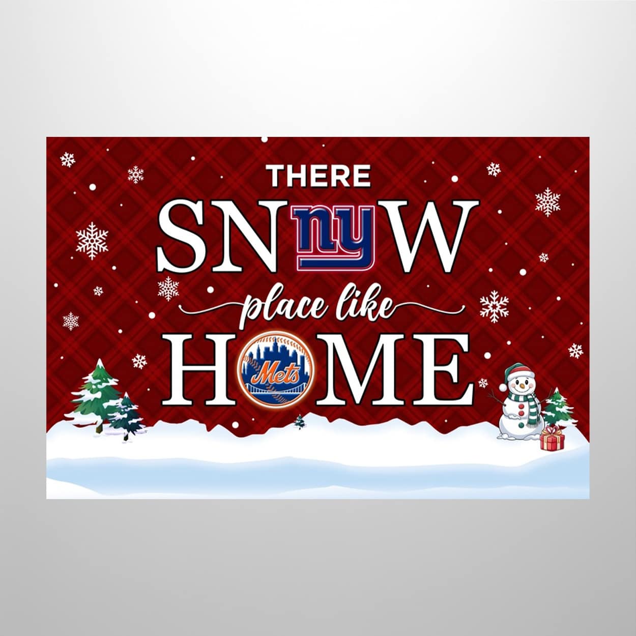 Welcome guests with New York pride and holiday cheer using the Giants x Mets There Snow Place Like Home Doormat — a festive fan favorite.