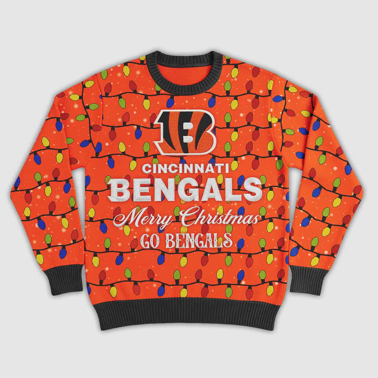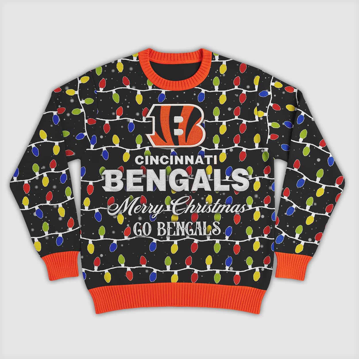 Go Bengals Merry Christmas Lights Ugly Sweater