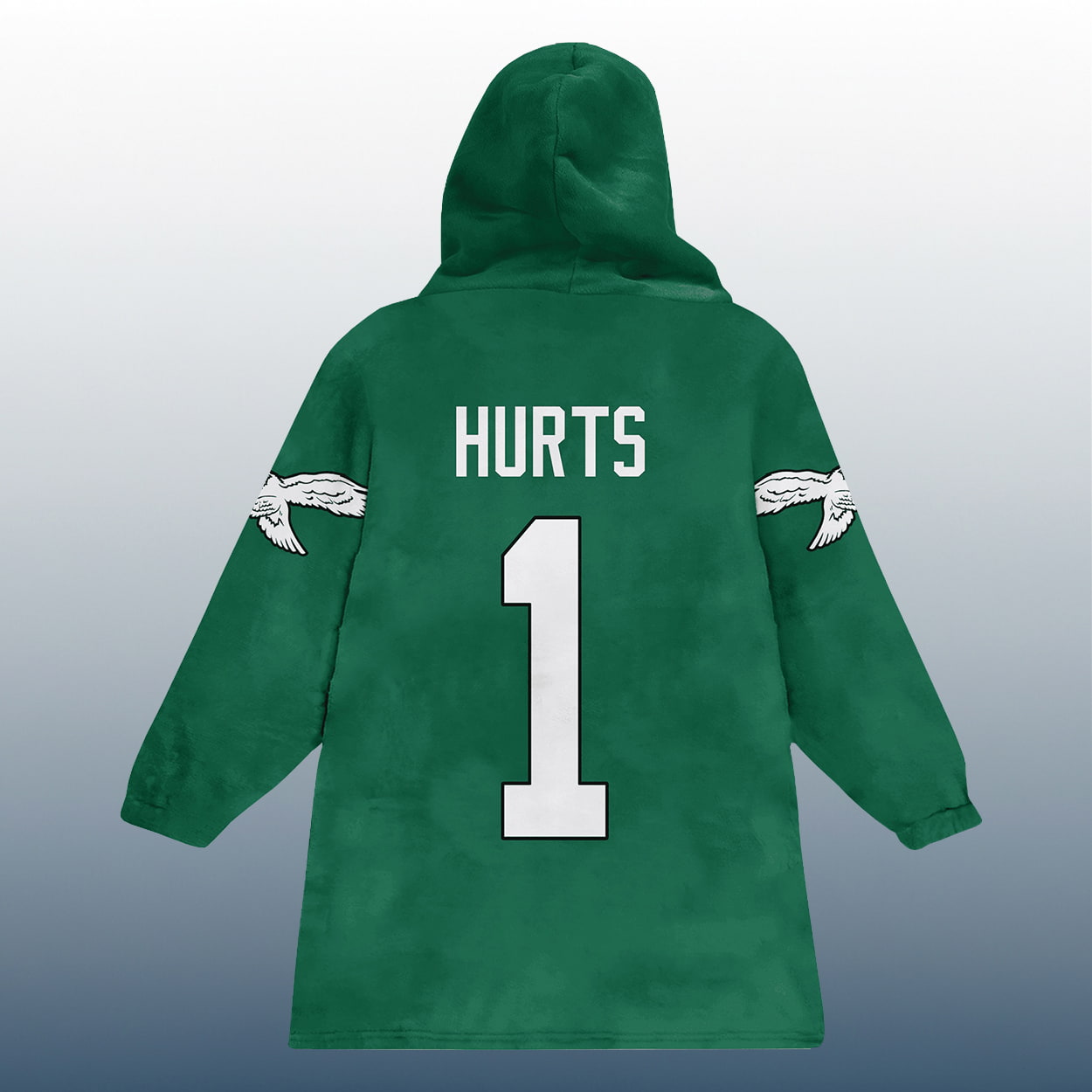 Soar in Style with the Go Birds Eagles Jalen Hurts 1 Unisex Blanket Hoodie!