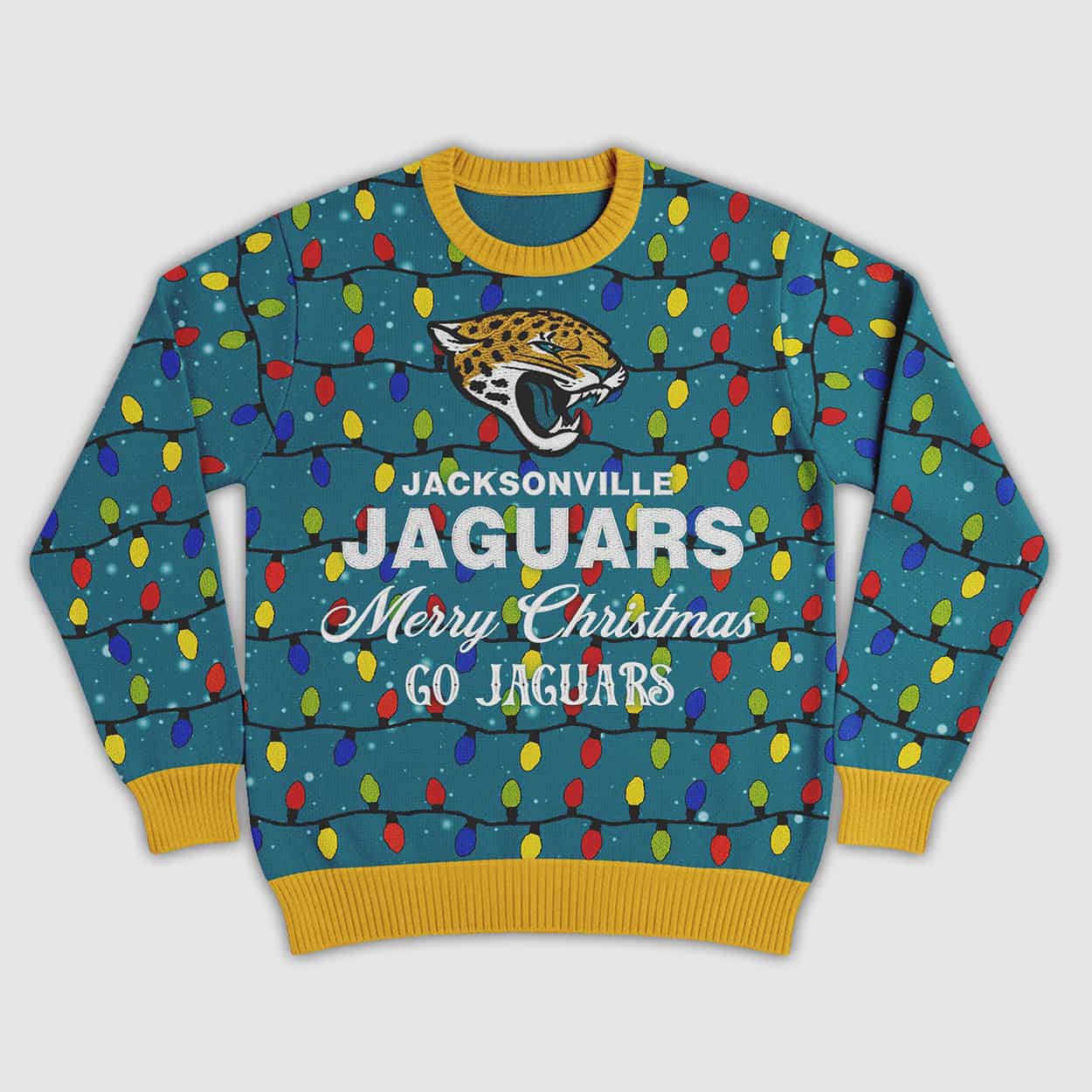 Go Jaguars Merry Christmas Lights Ugly Sweater