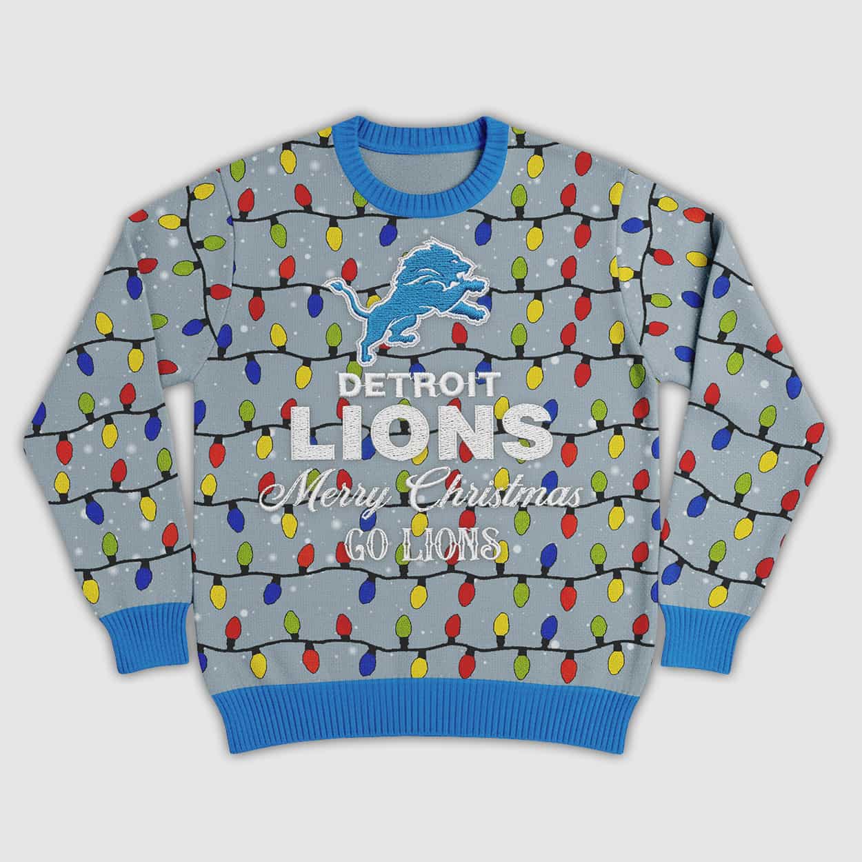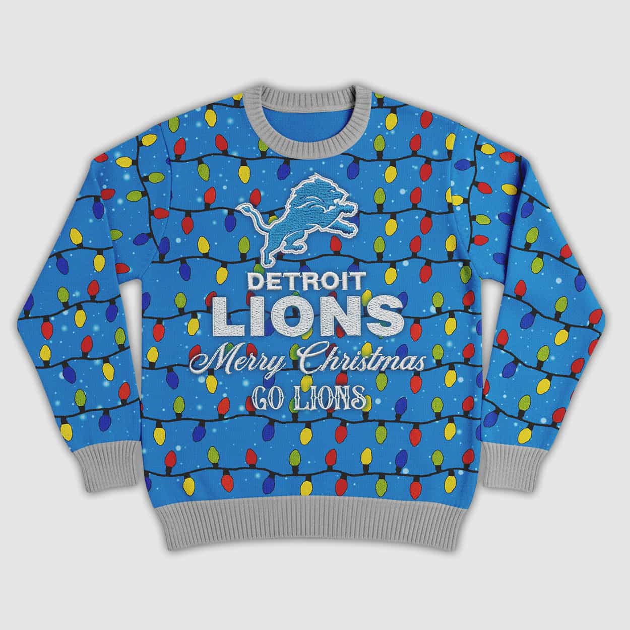 Roar into the holiday season with the Go Lions Merry Christmas Lights Ugly Sweater—a festive fusion of Lions pride and Christmas cheer that’s perfect for bold fans who love to stand out.
