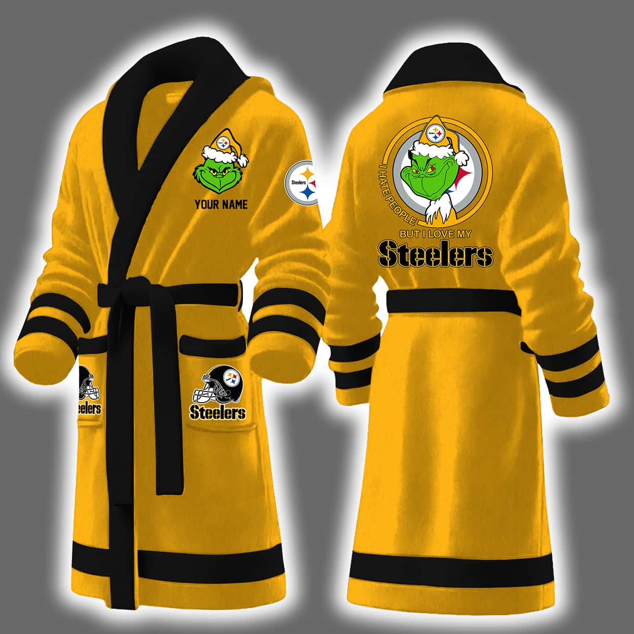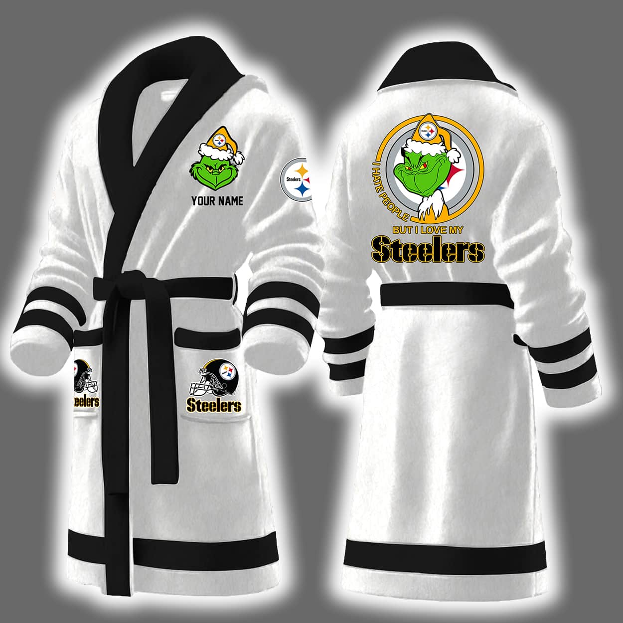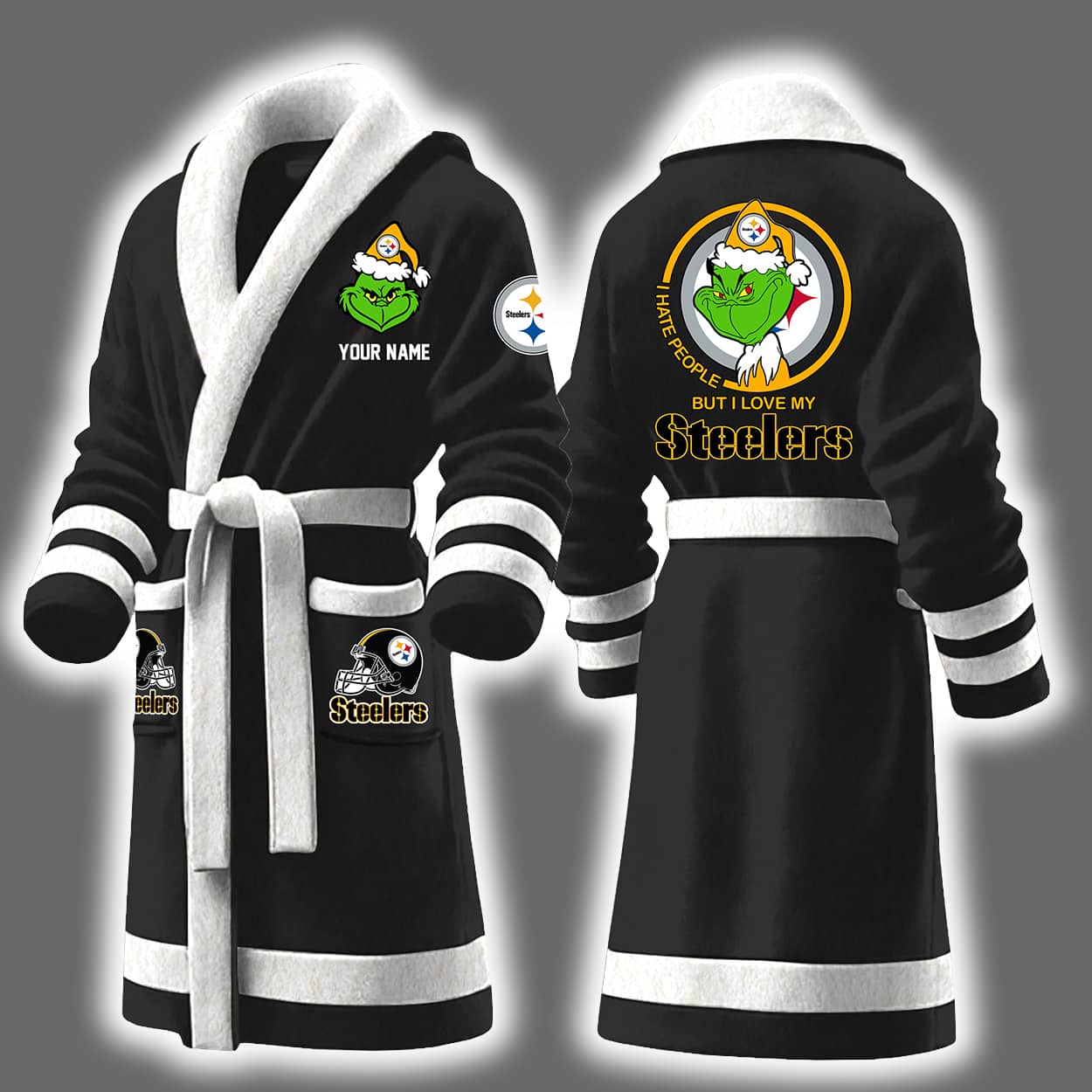 Grnch I Hate People But I Love My Steelers Bathrobe