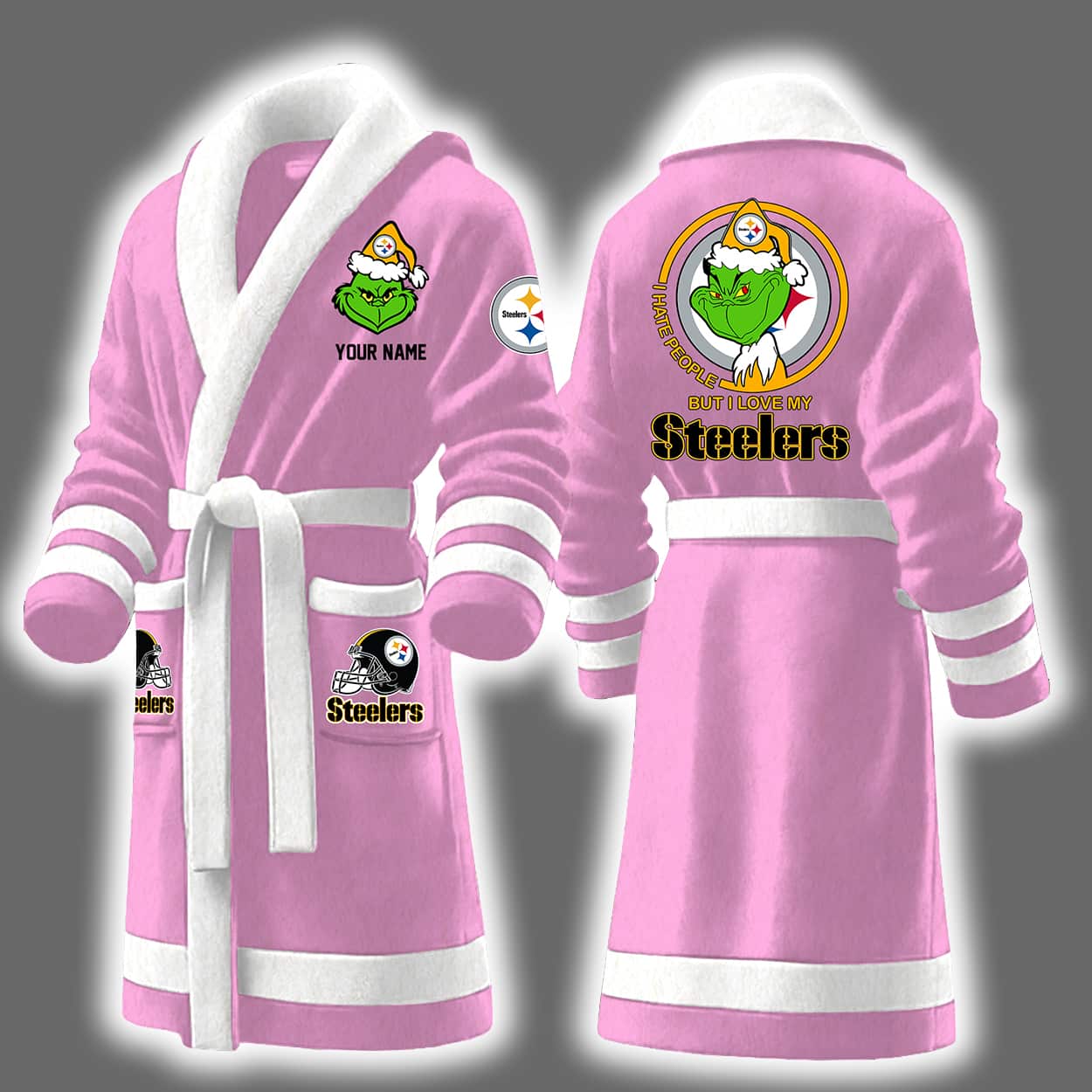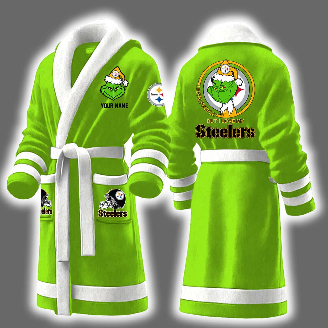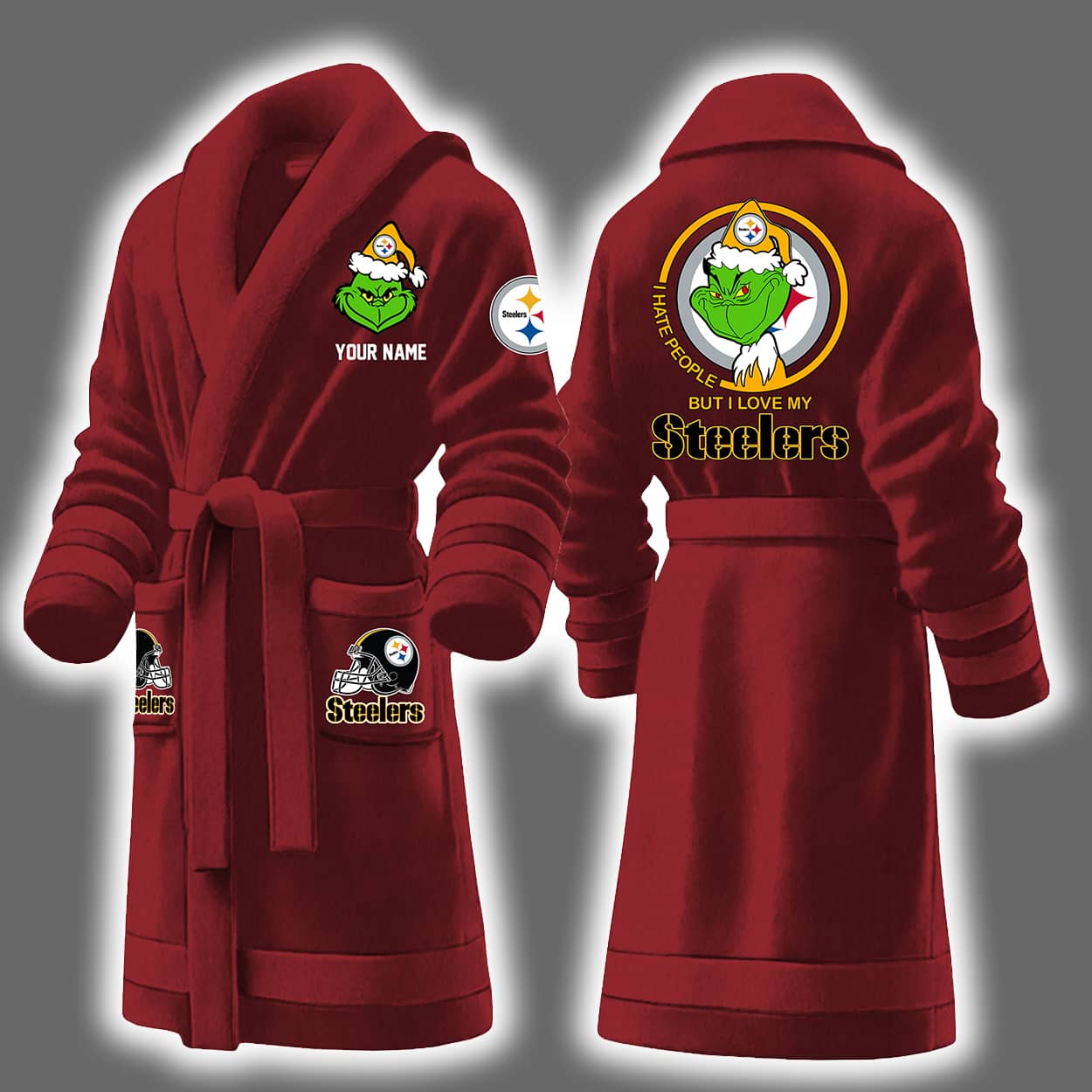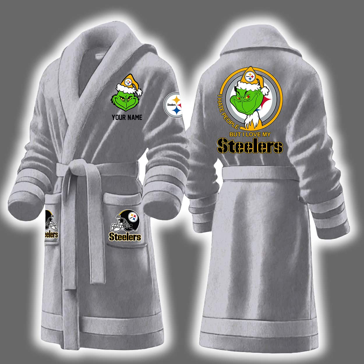 Grnch I Hate People But I Love My Steelers Bathrobe