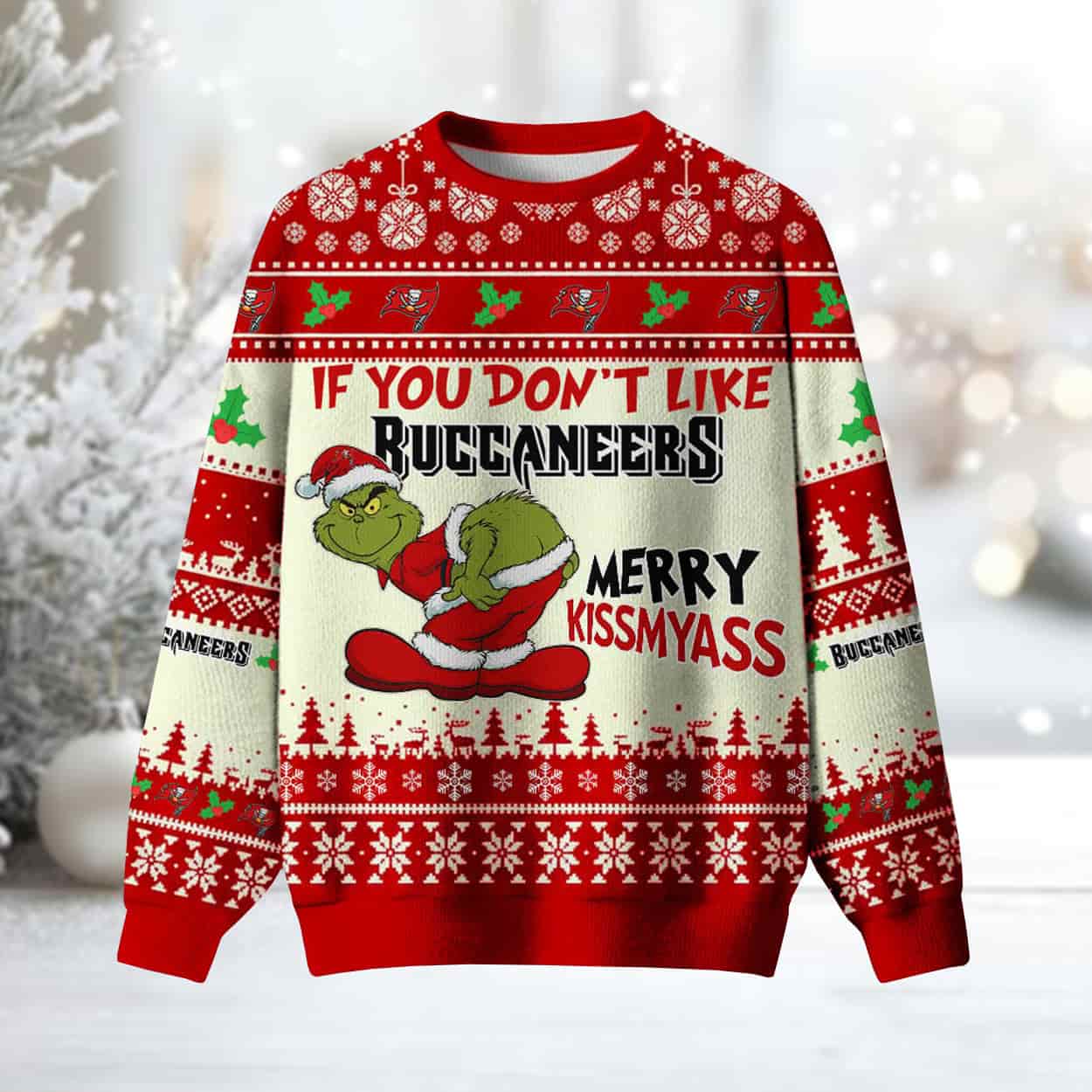 Grnch If You Don’t Like Buccaneers Merry Kissyass Ugly Christmas Sweater
