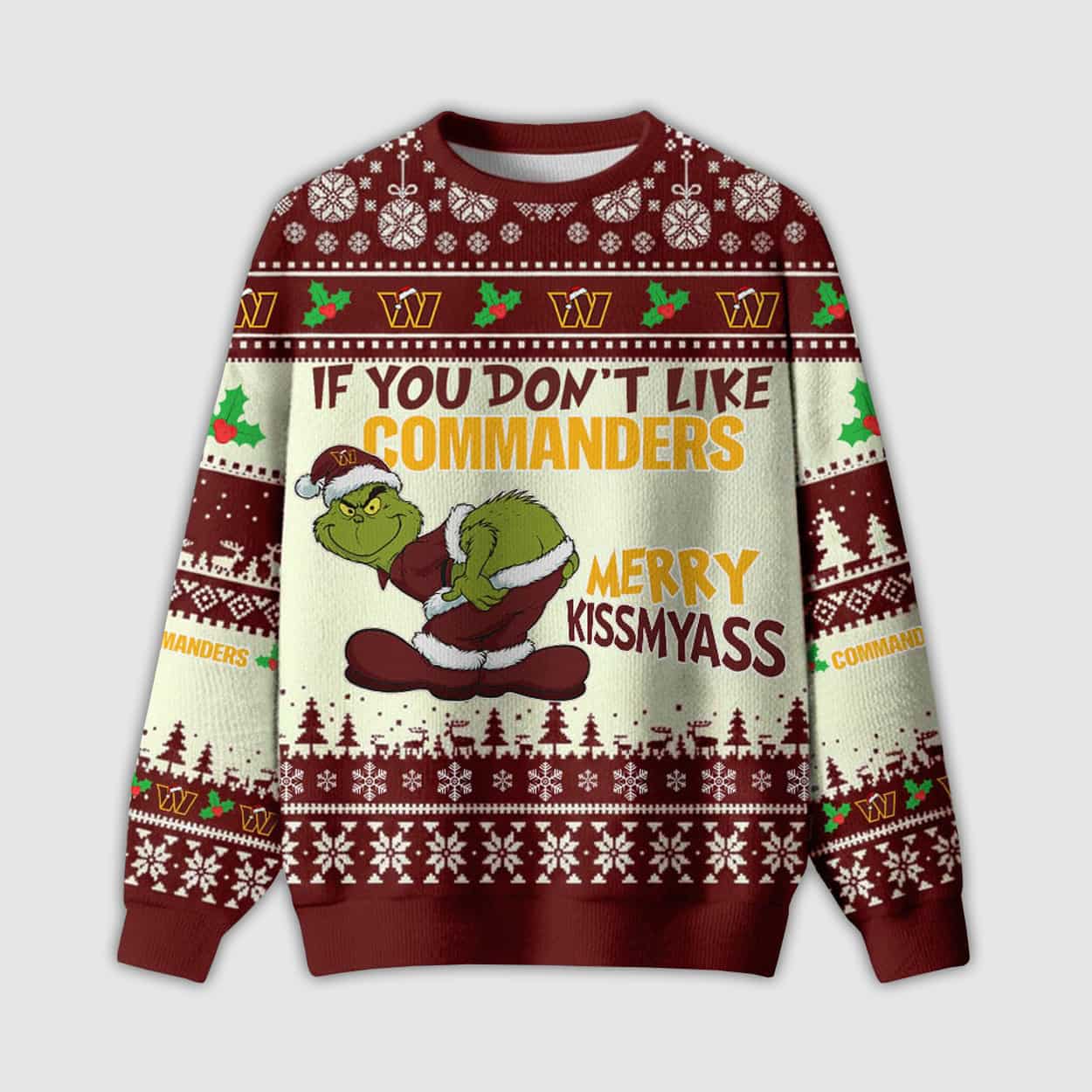 Grnch If You Don’t Like Commanders Merry Kissyass Ugly Christmas Sweater