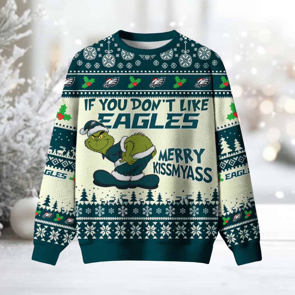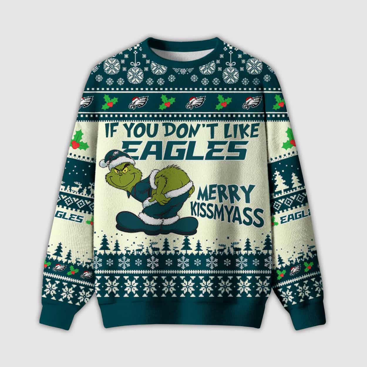 Grnch If You Don’t Like Eagles Merry Kissyass Ugly Christmas Sweater