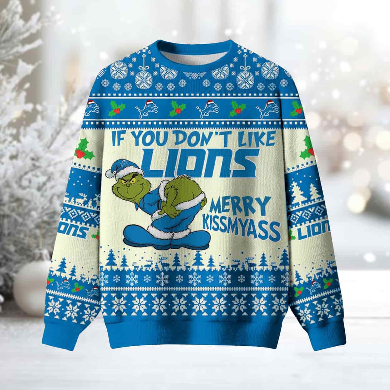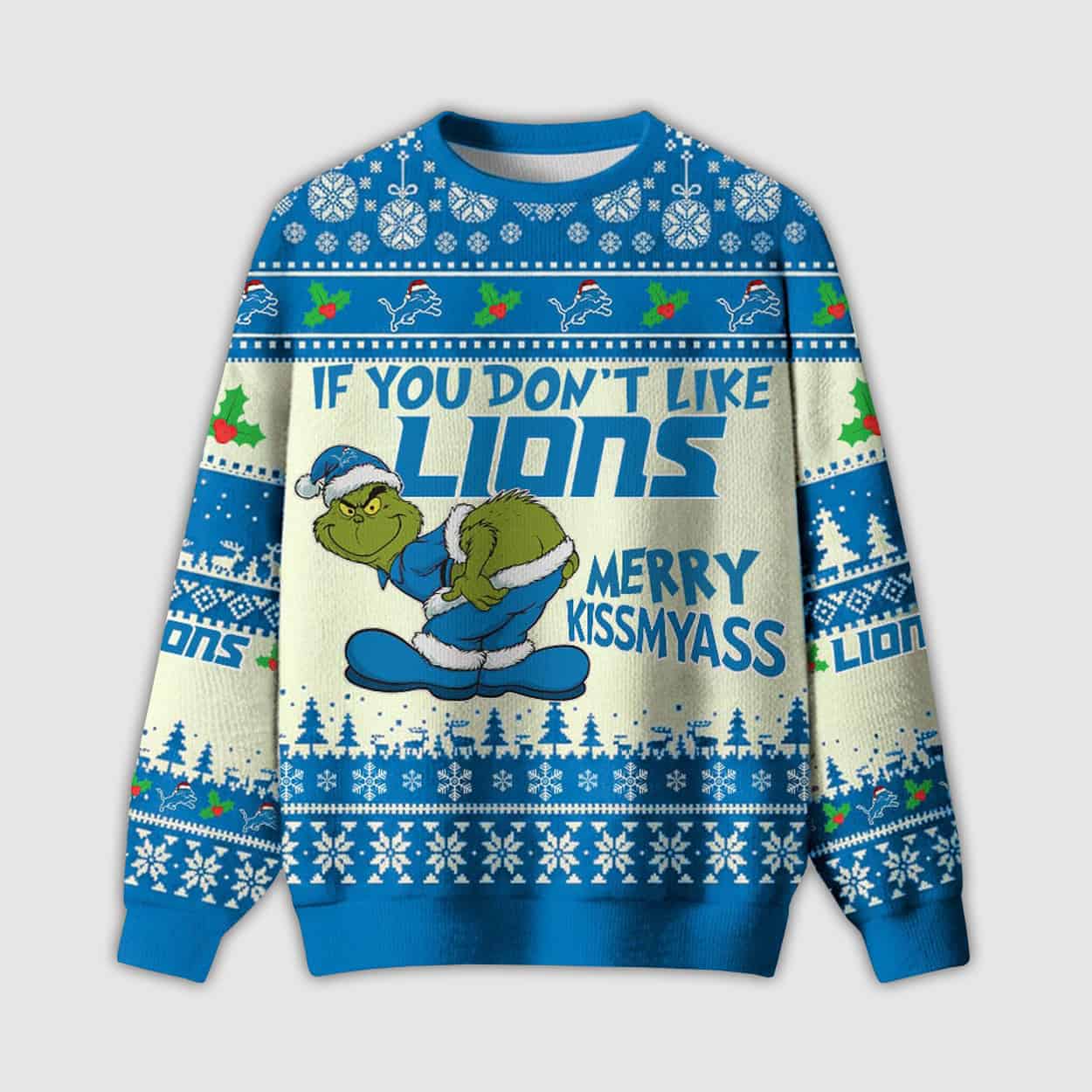 Grinch Meets Gameday: The Grnch If You Don’t Like Lions Merry Kissyass Ugly Christmas Sweater