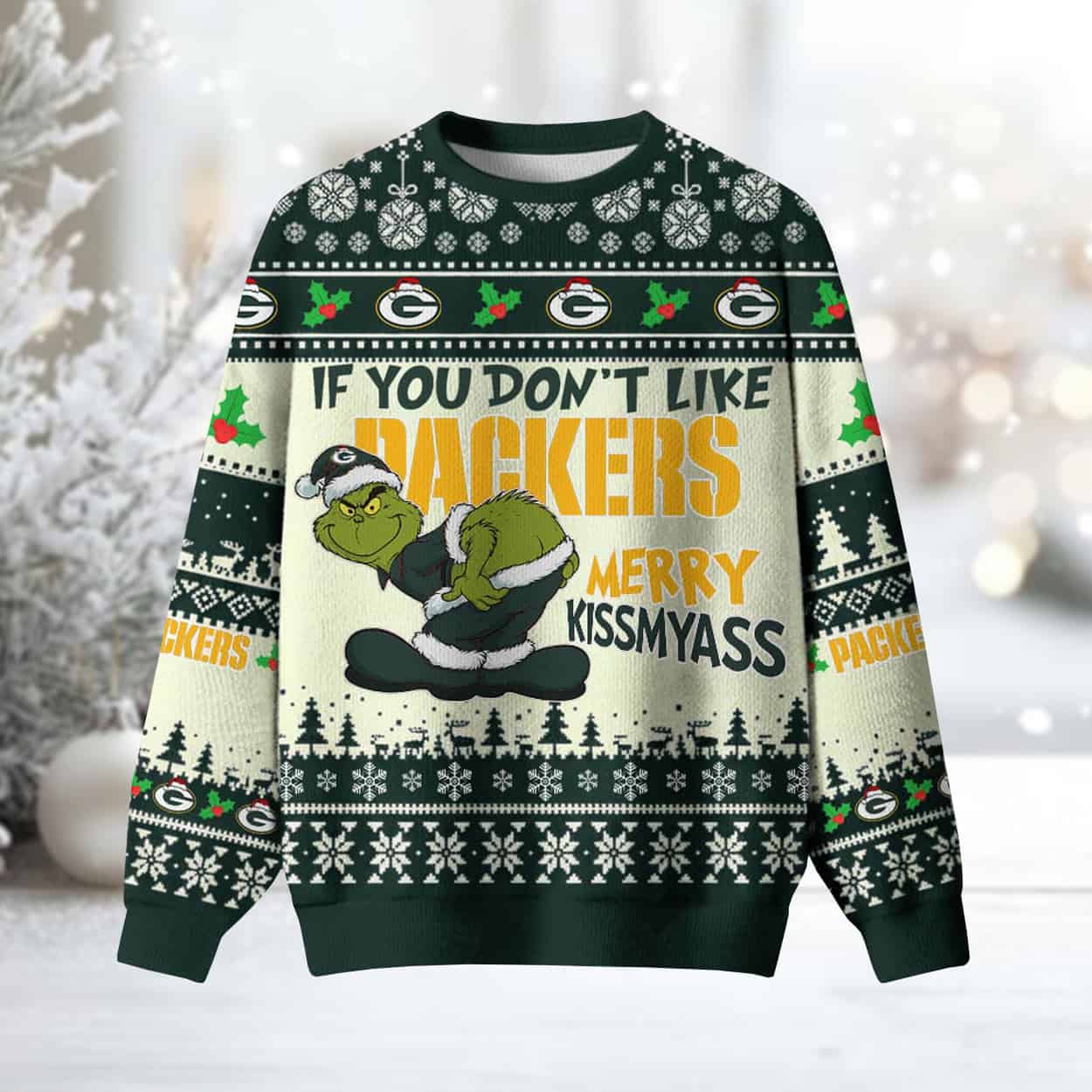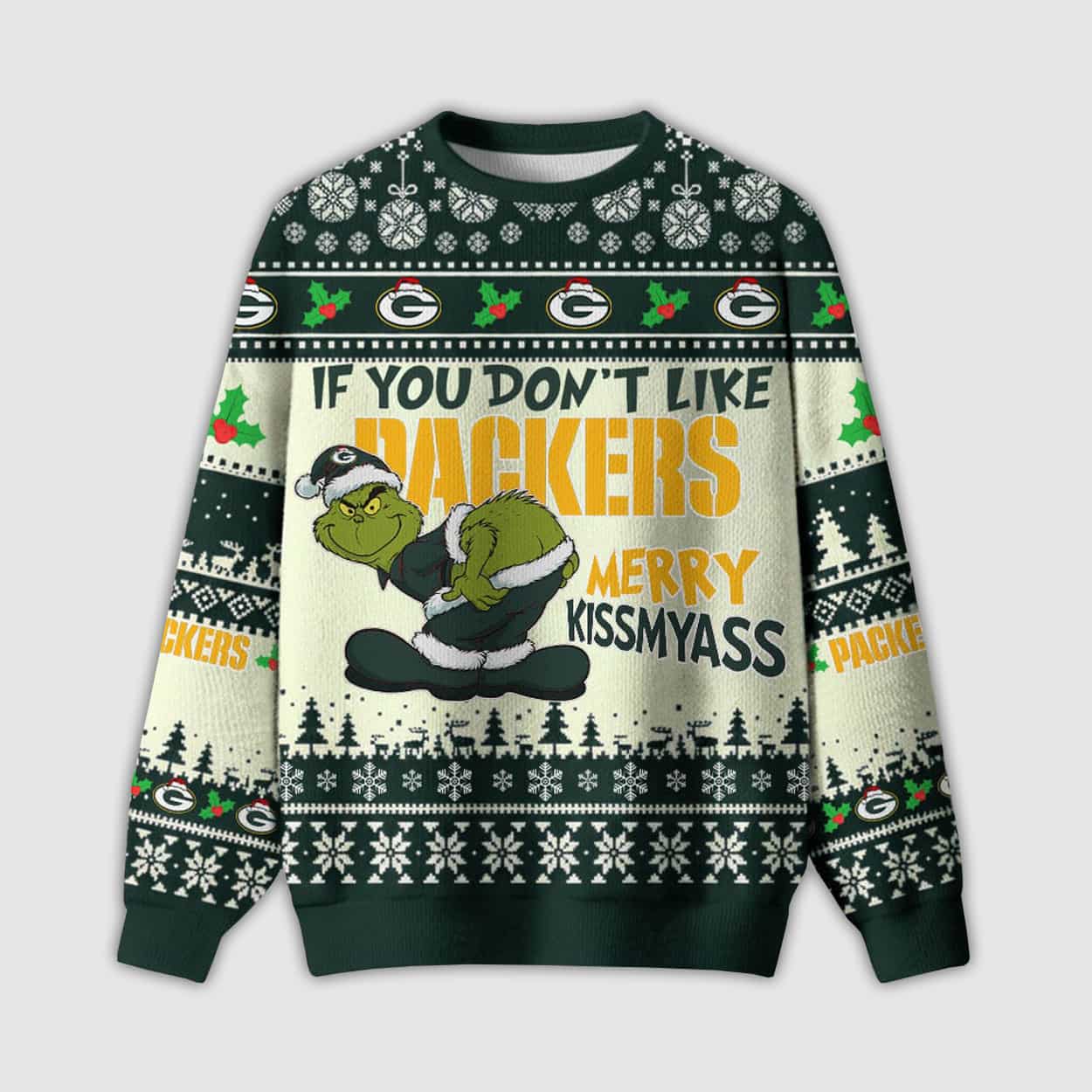 Grnch If You Don’t Like Packers Merry Kissyass Ugly Christmas Sweater