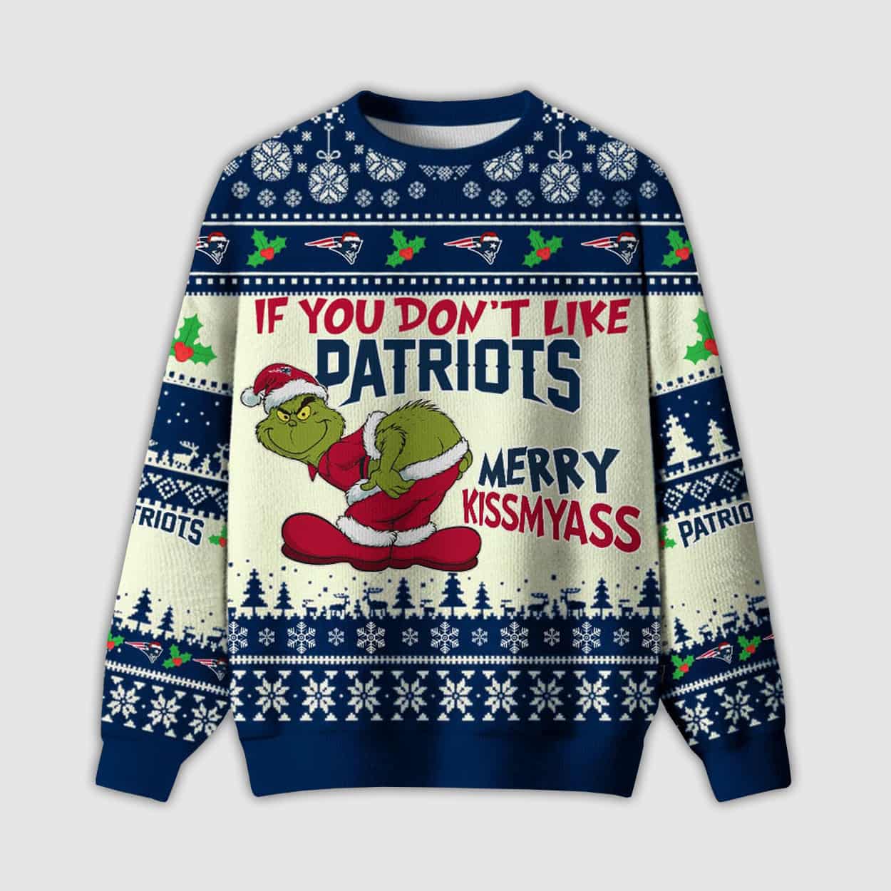 Grnch If You Don’t Like Patriots Merry Kissyass Ugly Christmas Sweater