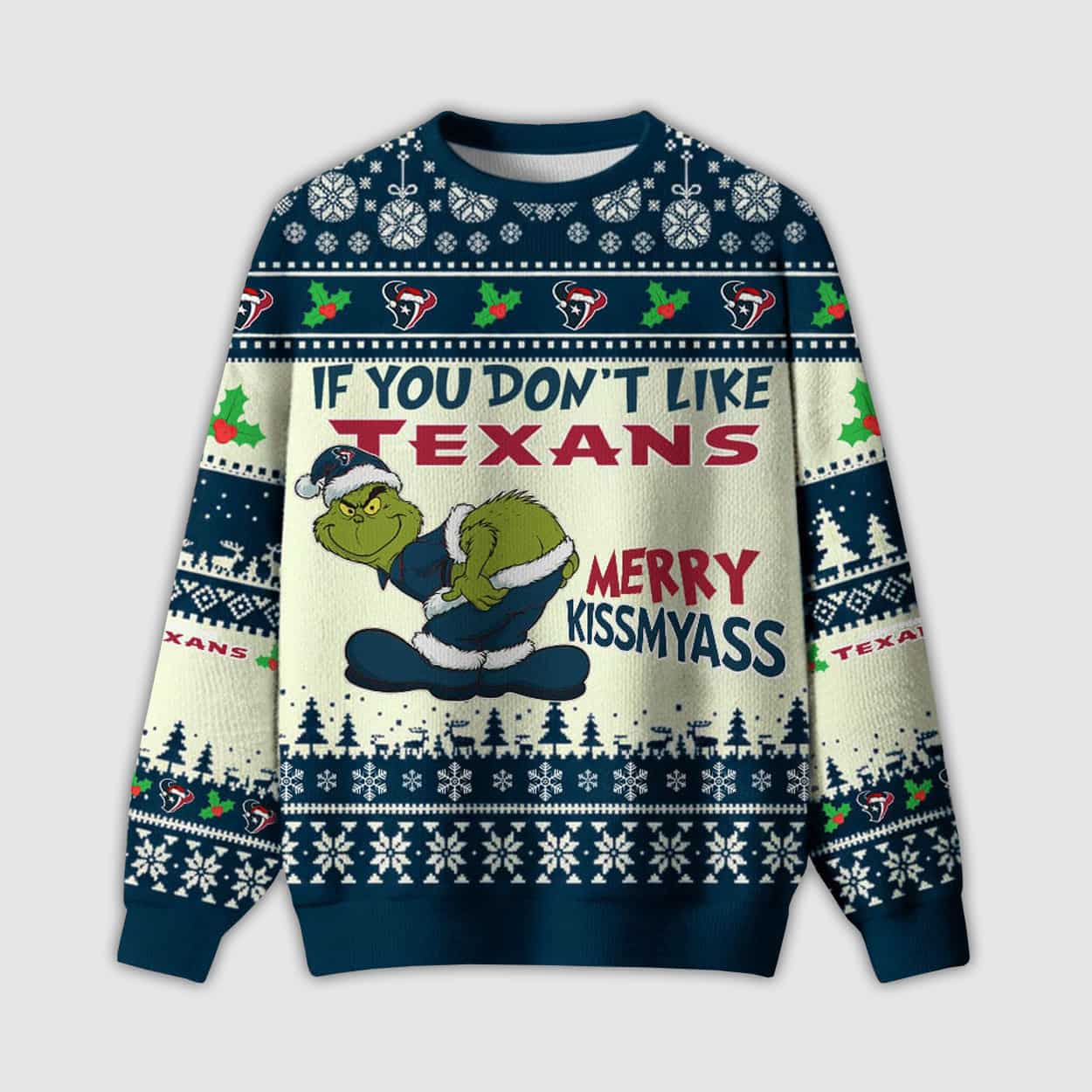 Grnch If You Don’t Like Texans Merry Kissyass Ugly Christmas Sweater