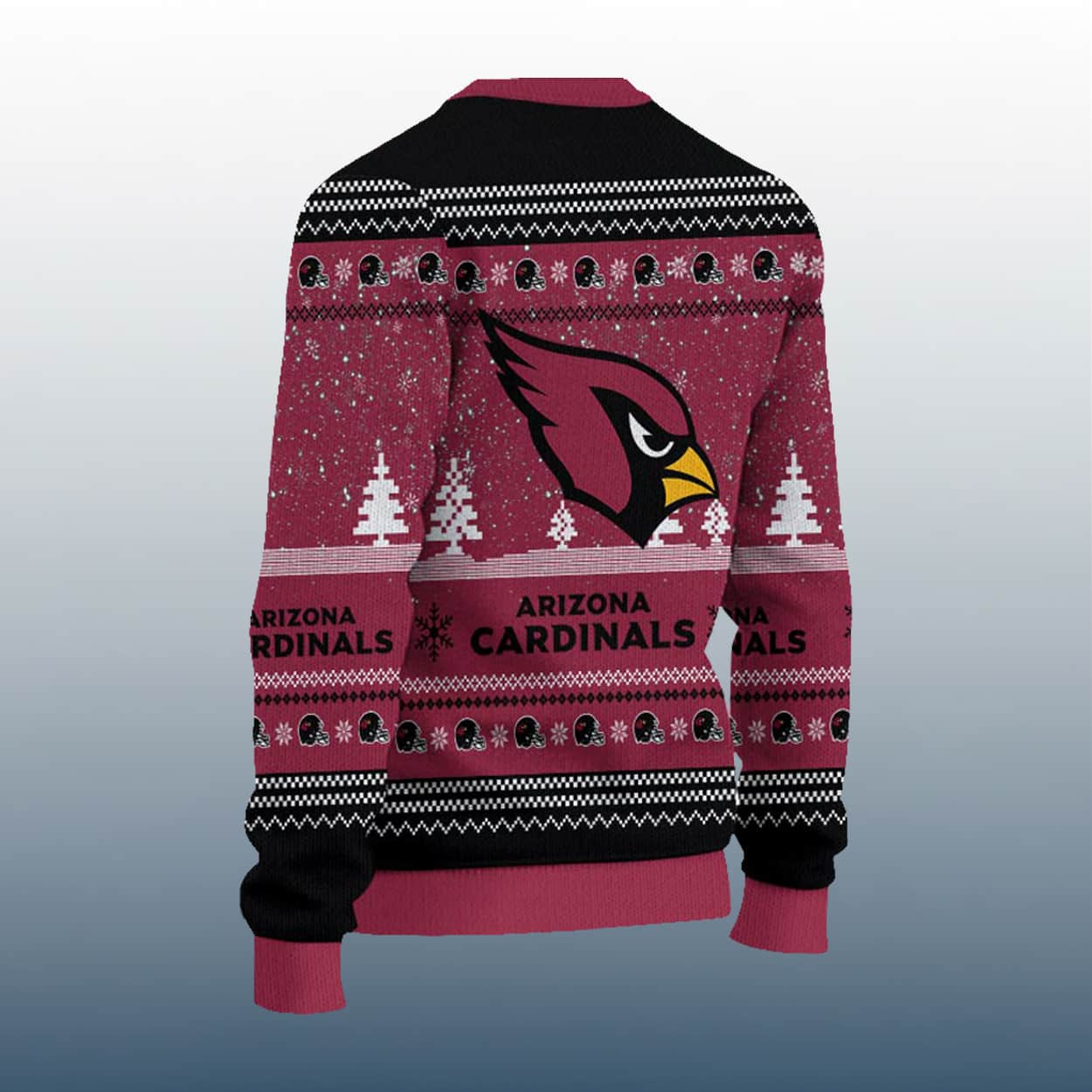 Get ready to sleigh the holiday season with this sweater! This eye-catching piece blends festive cheer with fierce team pride, featuring a front graphic of the Grinch donning a Santa hat and cheekily holding the letters “L” and “E”—while a cardinal bird cleverly forms the heart. Beneath this whimsical scene, “ARIZONA” is boldly printed, making it clear where your loyalty lies. The back showcases the team’s iconic logo surrounded by snowflakes, Christmas trees, and decorative borders in a striking maroon, black, and white palette.