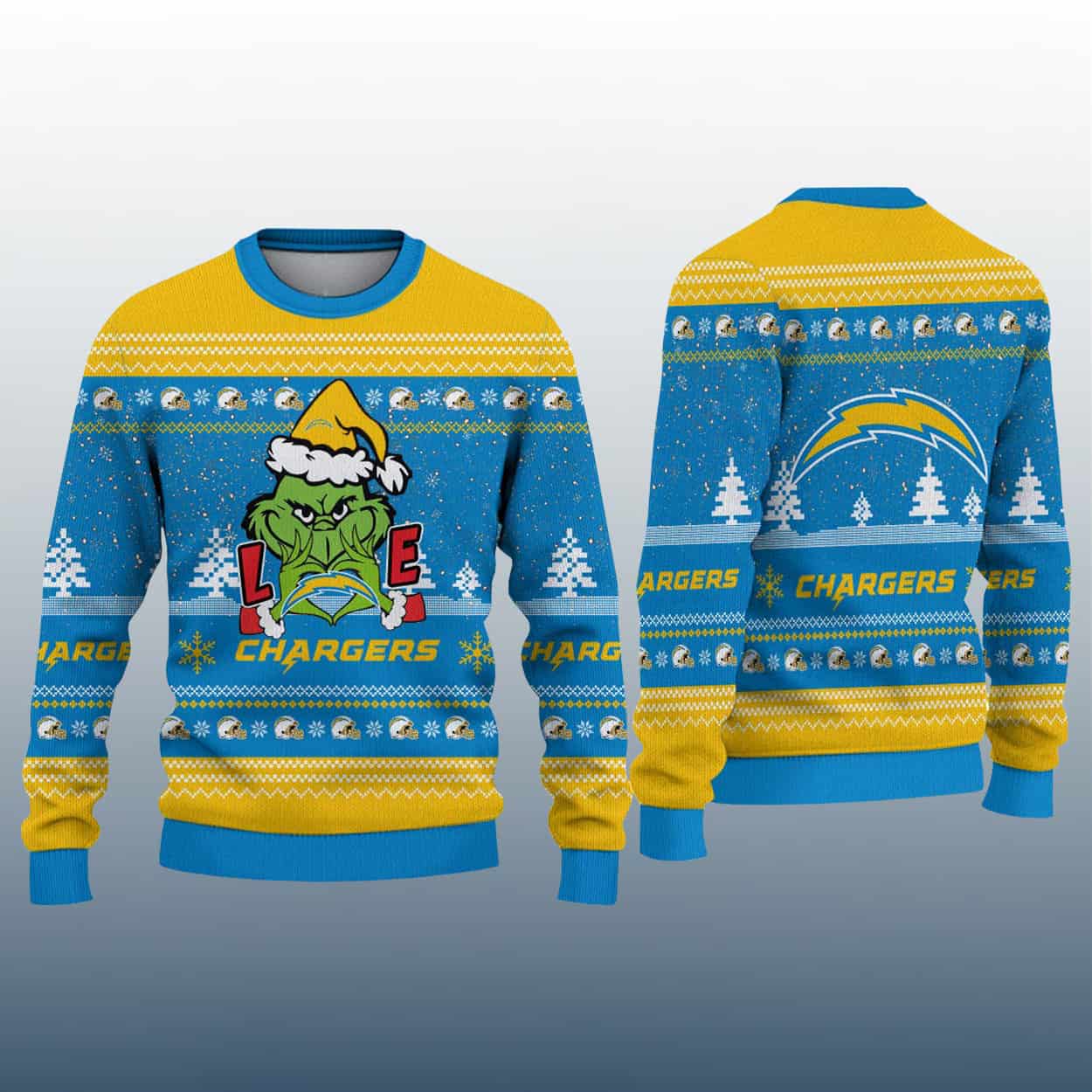 Jingle All the Way with the Grnch Love Chargers Ugly Christmas Sweater!