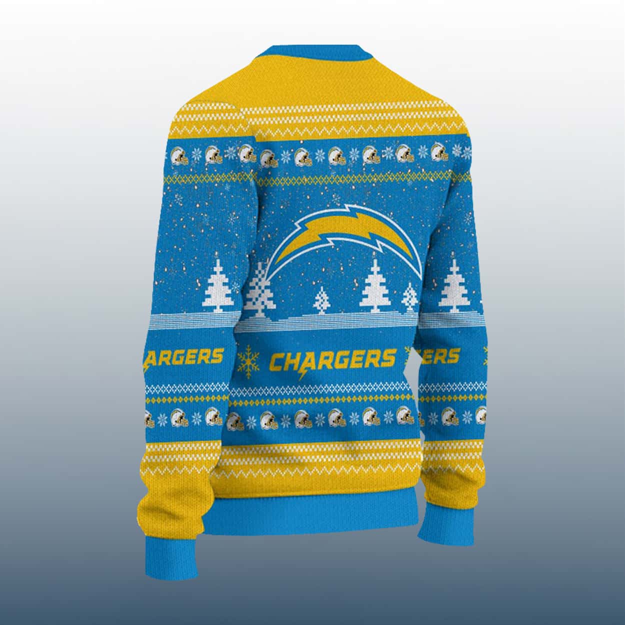 Get ready to light up the season with a sweater that’s as bold as a touchdown pass! This sweater is a playful celebration of holiday mischief and team loyalty. Drenched in vibrant blue and yellow, the front showcases a mischievous Grinch wearing a Santa hat, clutching the Chargers lightning bolt logo. Flanked by the letters “L” and “E”, the design cleverly spells out “LOVE” with the logo at its heart. Snowflakes, Christmas trees, and whimsical patterns add a festive flair, while the back proudly displays the iconic Chargers bolt above the team name—making sure your fandom shines from every angle.