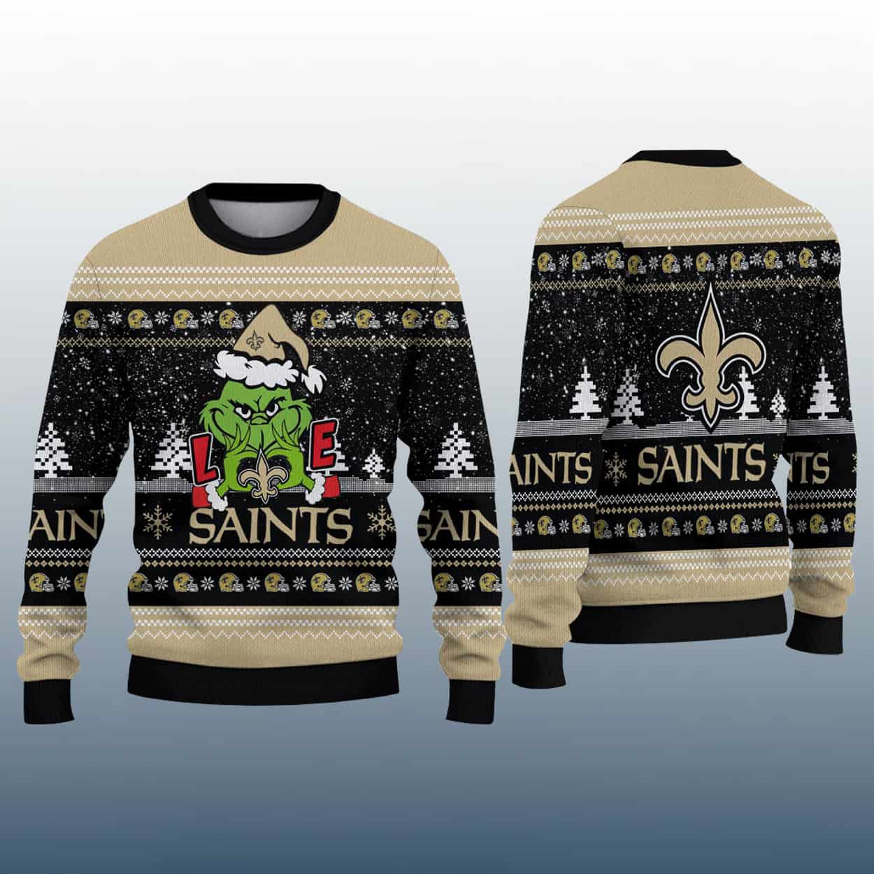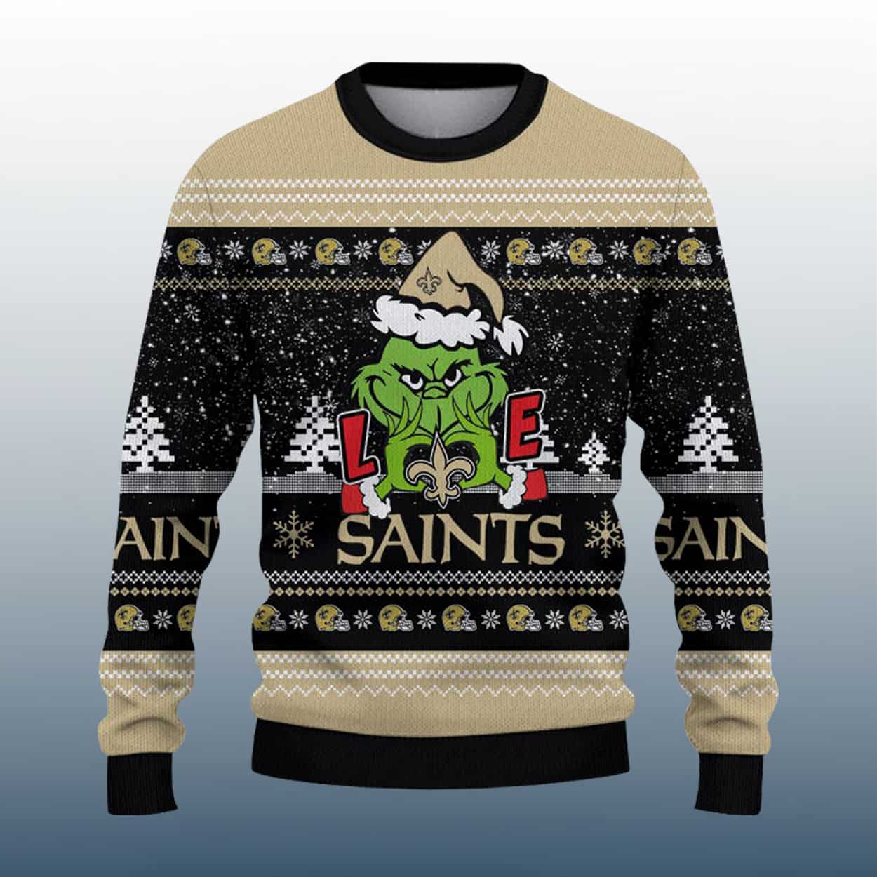 Sleighin’ in Style: The Grnch Love Saints Ugly Christmas Sweater