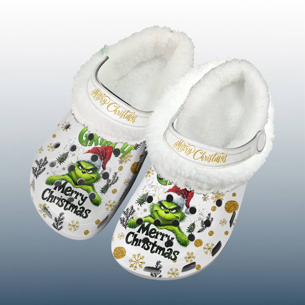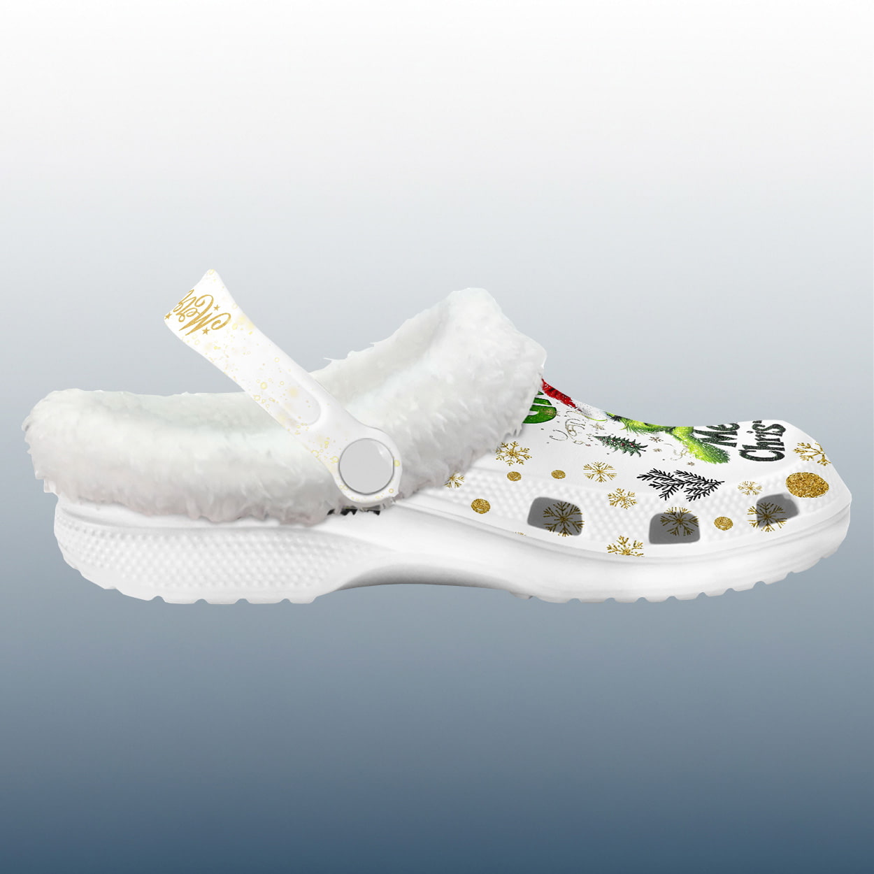 Festive Mischief for Your Feet: Grnch Merry Christmas Fleece Crocs