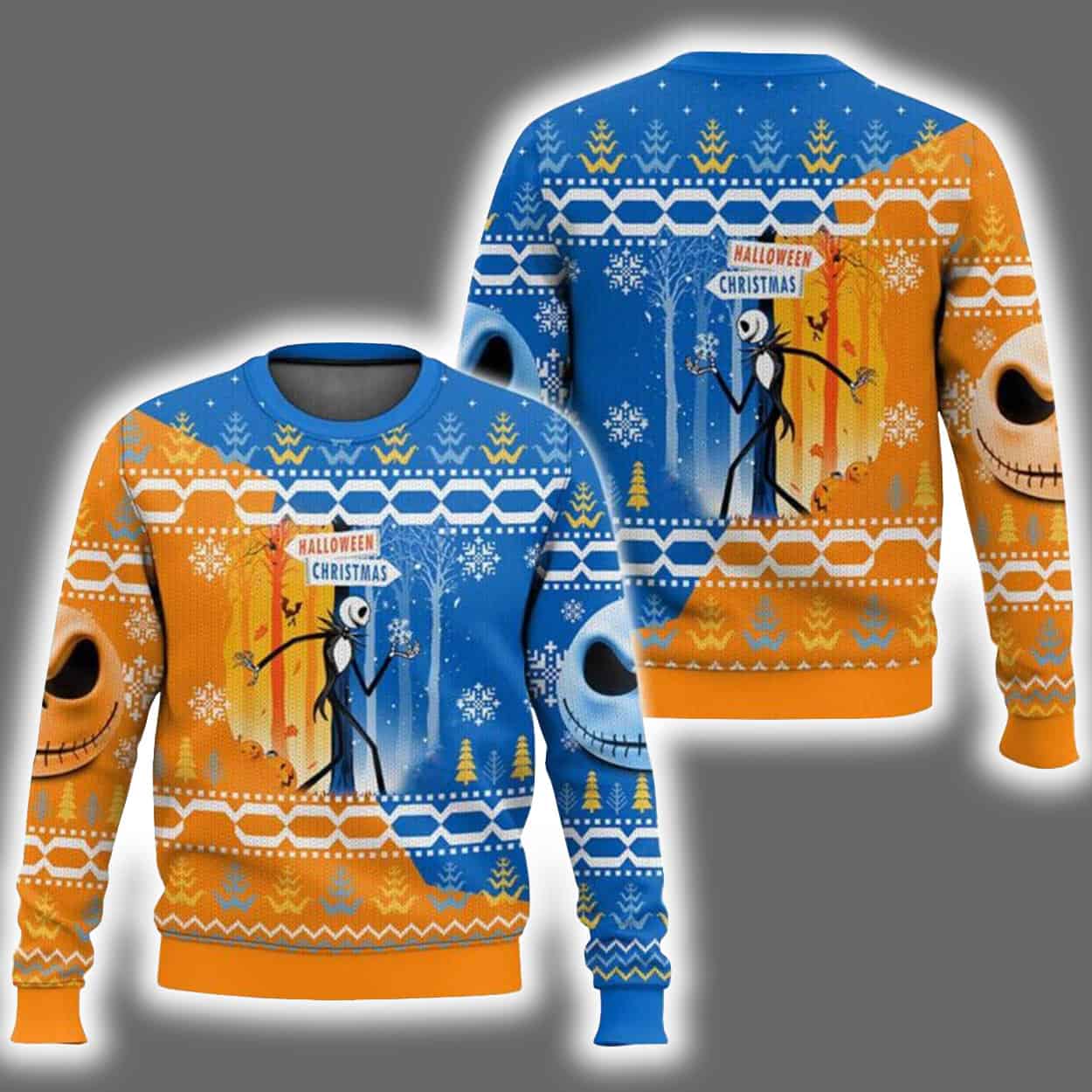 Halloween To Christmas Jack Skellington Ugly Christmas Sweater