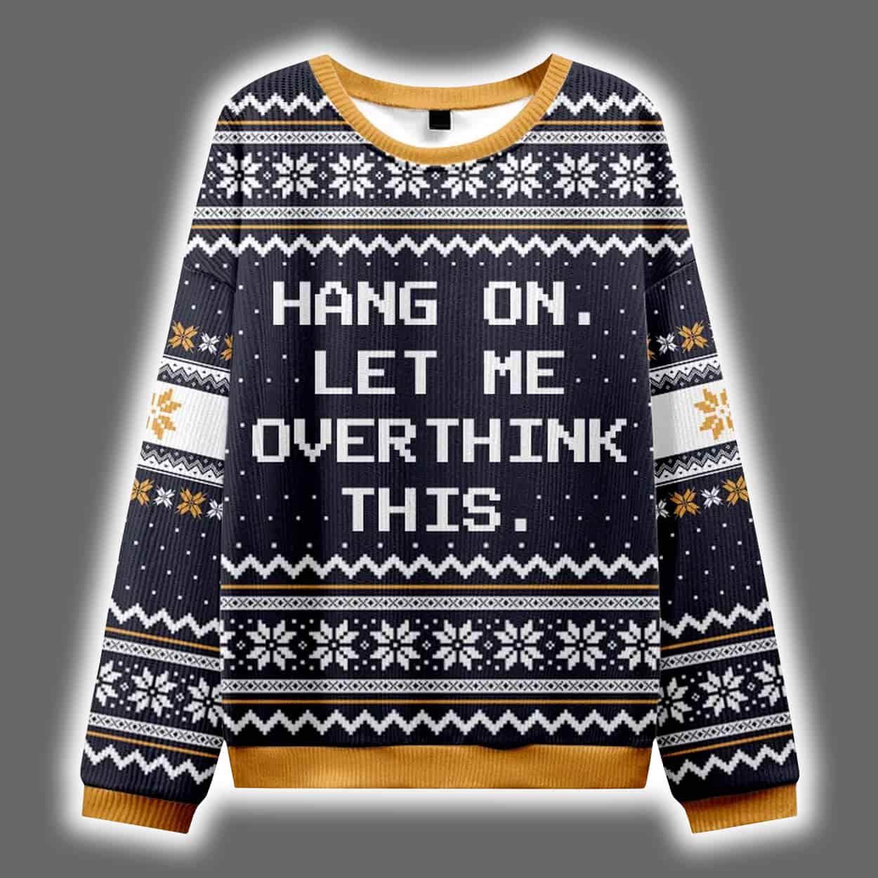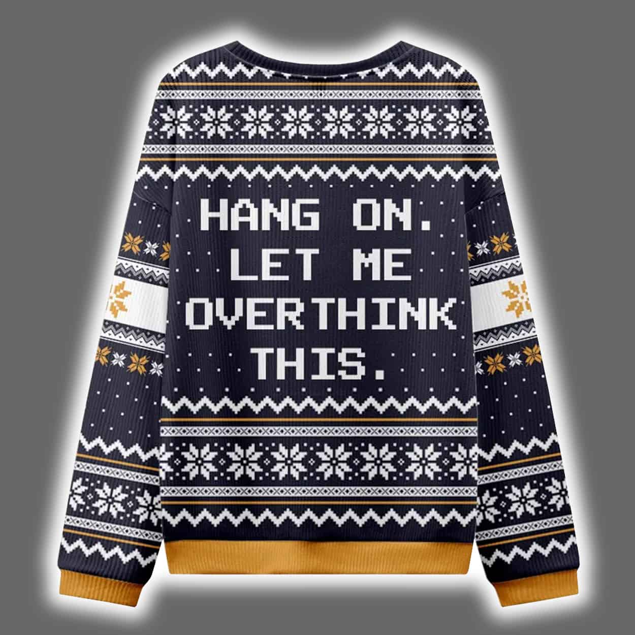 Embrace your inner overthinker this holiday season with the Hang On Let Me Overthink This Ugly Christmas Sweater—a cozy, witty tribute to those who analyze everything, even their festive fashion choices.