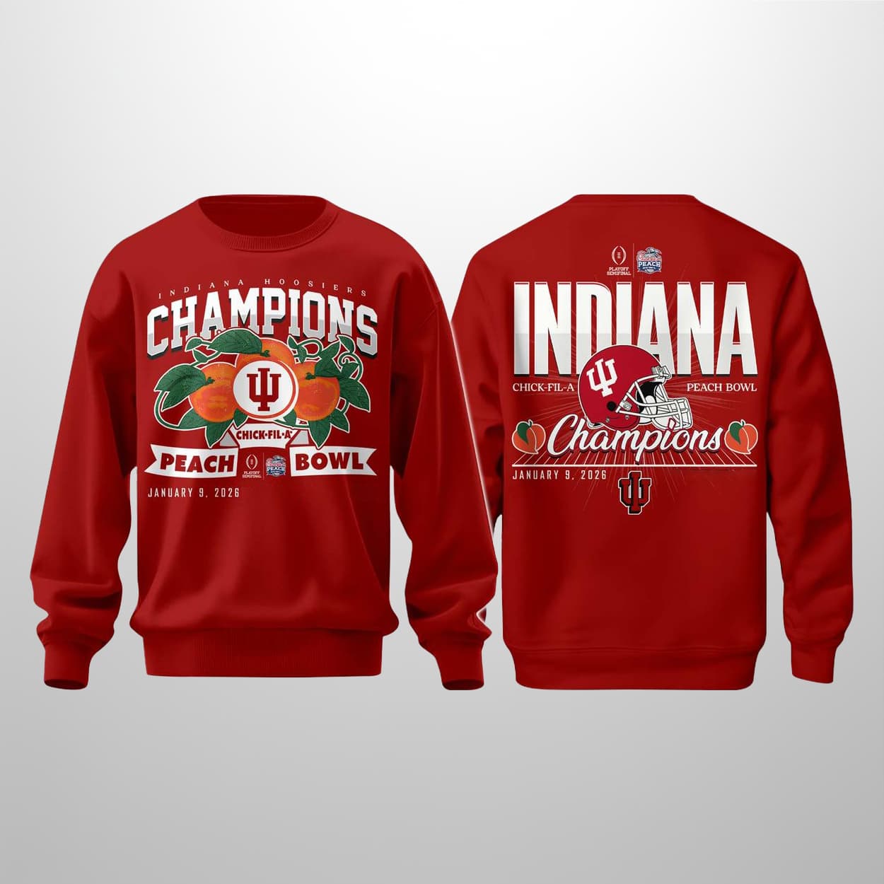 Turn heads and relive the thrill of Indiana University’s epic Peach Bowl victory with this shirt. The front bursts with pride, featuring “CHAMPIONS” in bold white lettering above a juicy “PEACH BOWL” banner flanked by vibrant peach illustrations. Center stage is the iconic Indiana University logo, radiating school spirit. Below, the date “JANUARY 9, 2026” immortalizes the moment. Flip it around and you’ll find “INDIANA” standing tall across the shoulders, with “Champions” elegantly scripted beneath, surrounded by celebratory graphics and more peaches than a Georgia orchard.