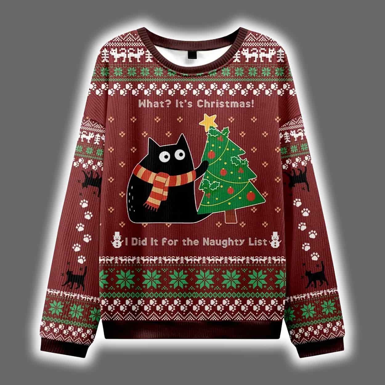 I Did It For The Naughty List Cat Ugly Christmas Sweater