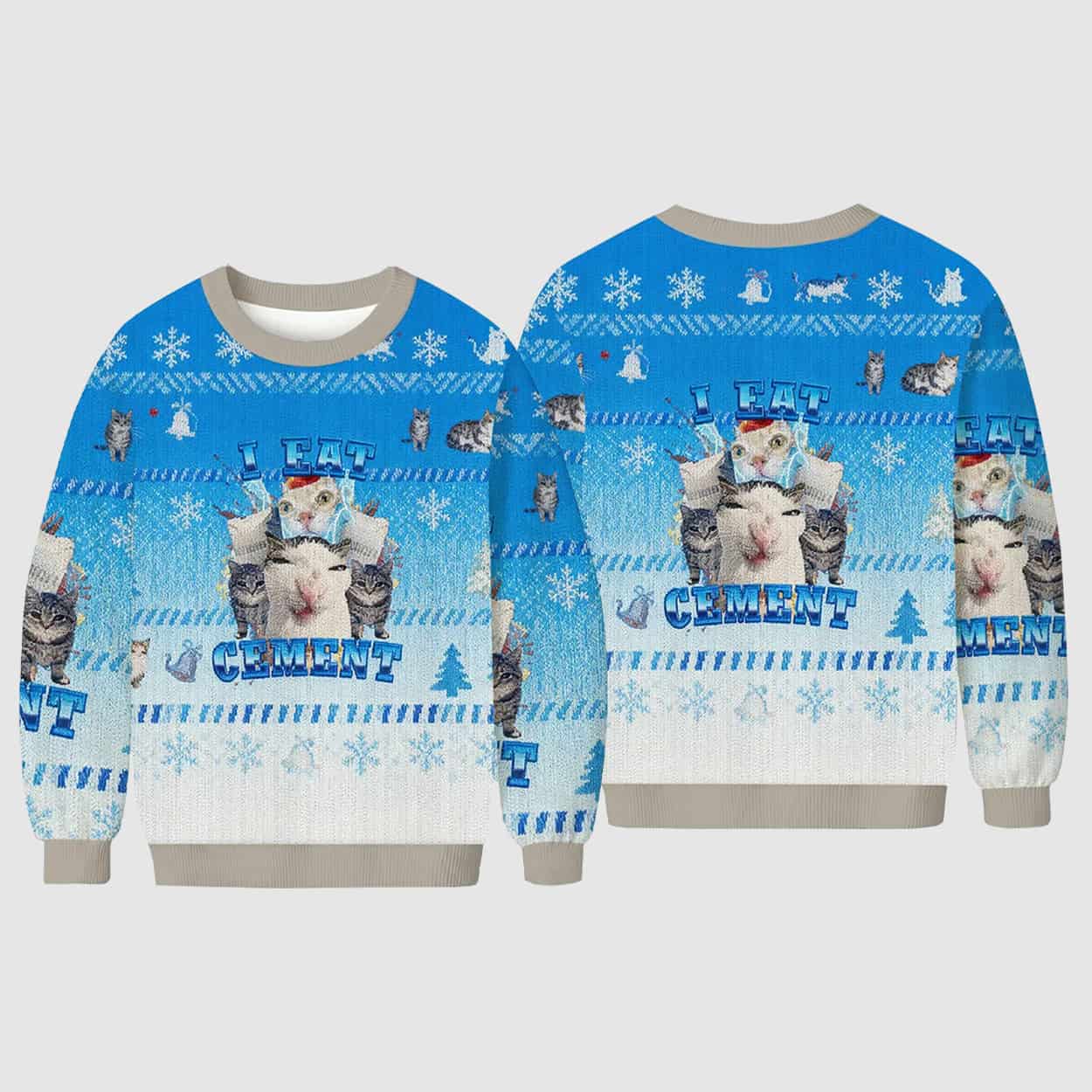 Cement Munching & Meow Magic: The I Eat Cement Funny Cat Meme Ugly Christmas Sweater