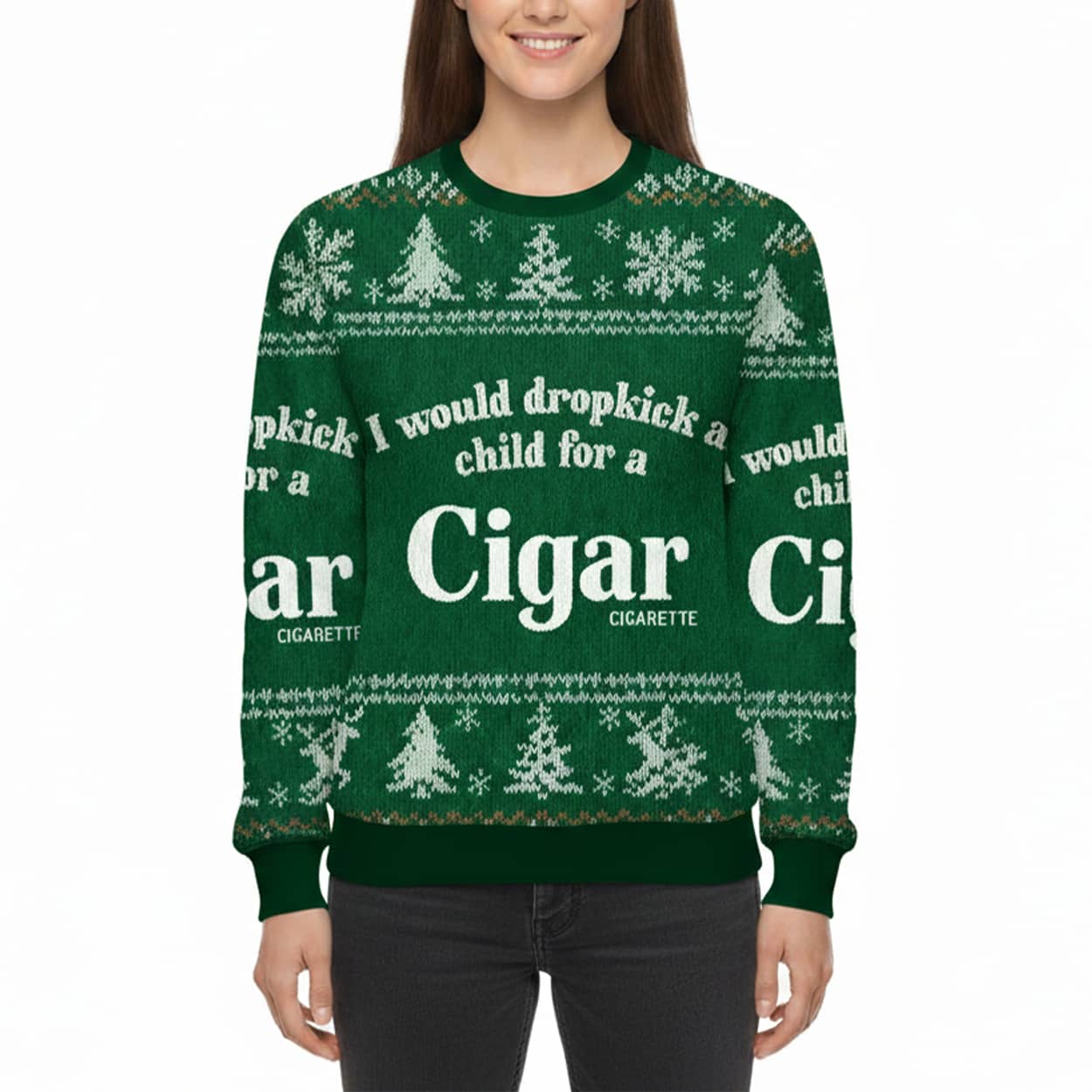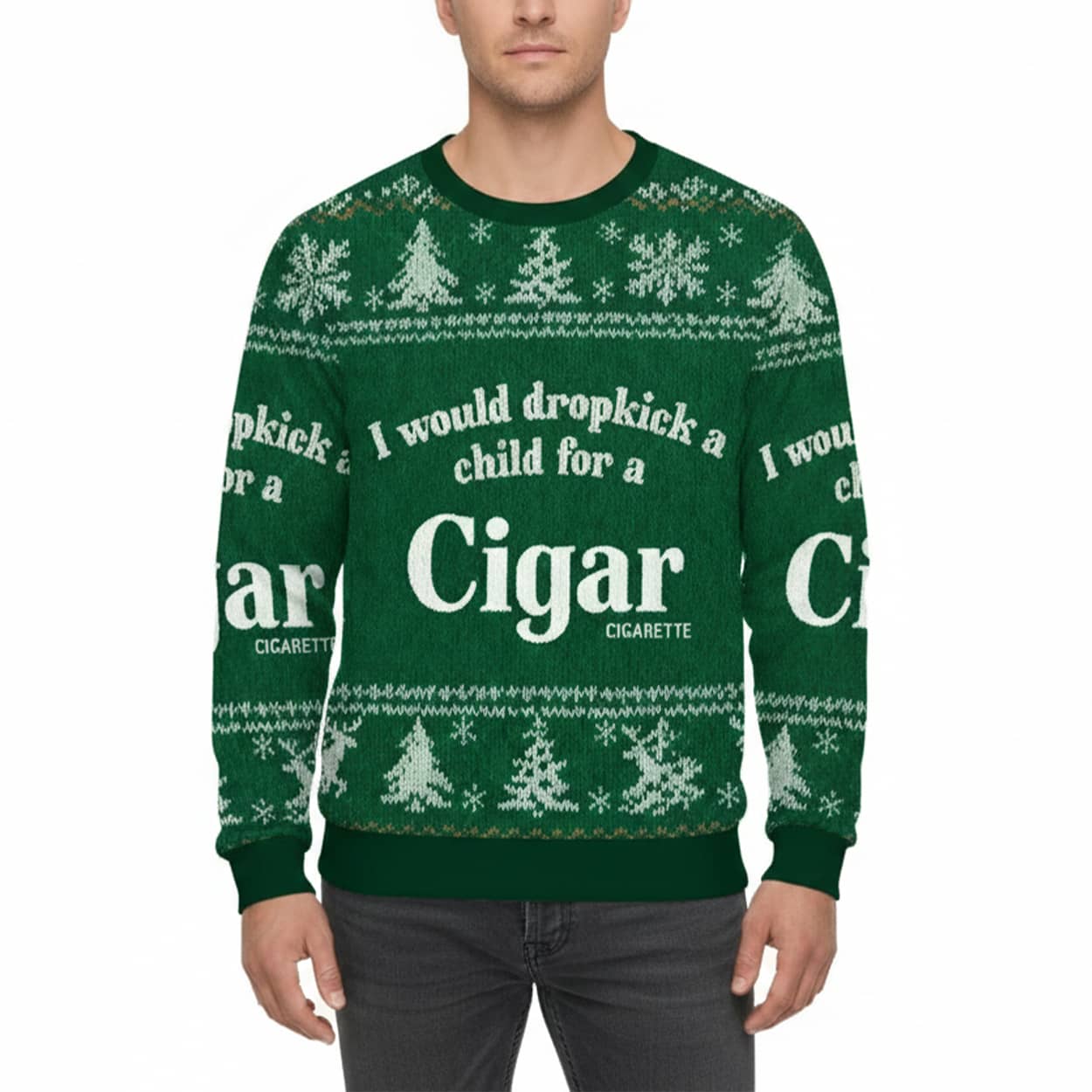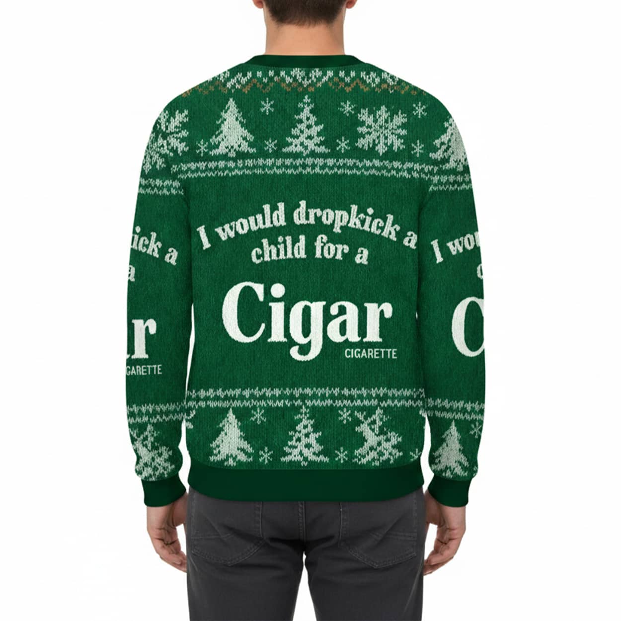 I Would Dropkick A Child For A Cigar Cigarette Ugly Christmas Sweater