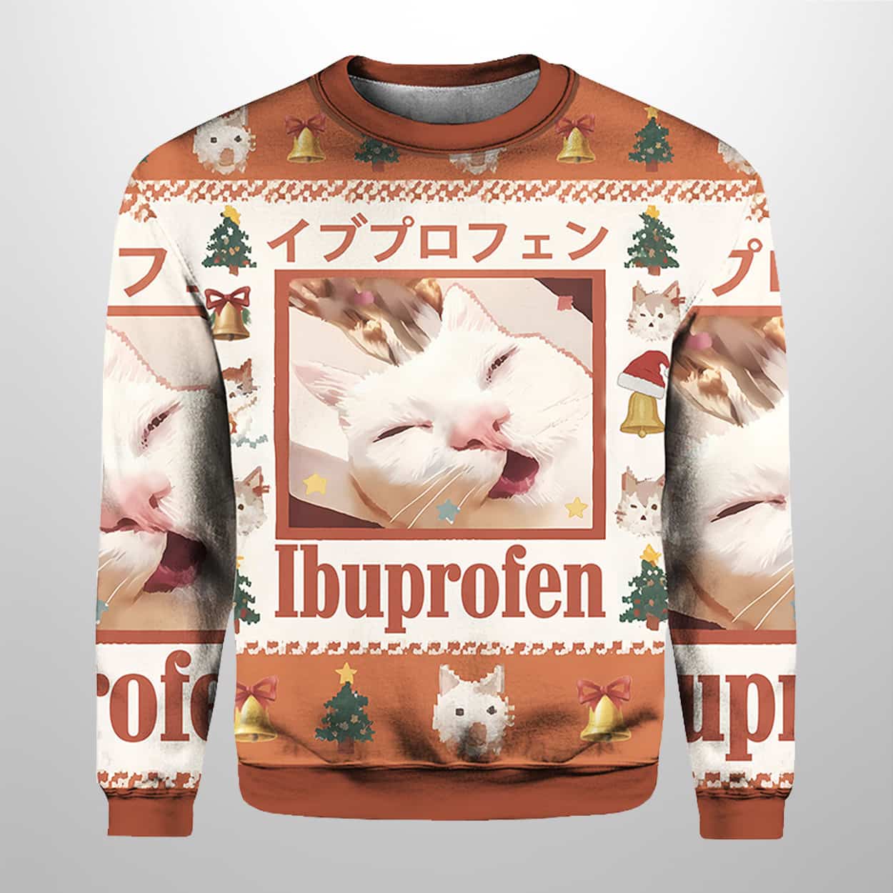 Ibuprofen Meme Cat Christmas Ugly Sweater