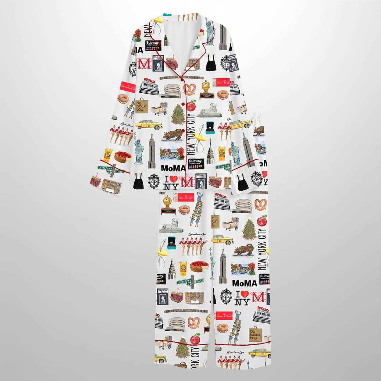 This pajama set is a love letter to New York, blending its iconic landmarks with the joy of the holiday season. It’s for dreamers, doers, and city lovers who find magic in museums, street food, and neon lights. The “I ♥ NY” motif and nods to MoMA and Broadway make it a cultural collage that celebrates creativity, hustle, and holiday spirit. Whether you’re a native New Yorker or just admire its charm, this set lets you wear your city pride with a wink and a smile.