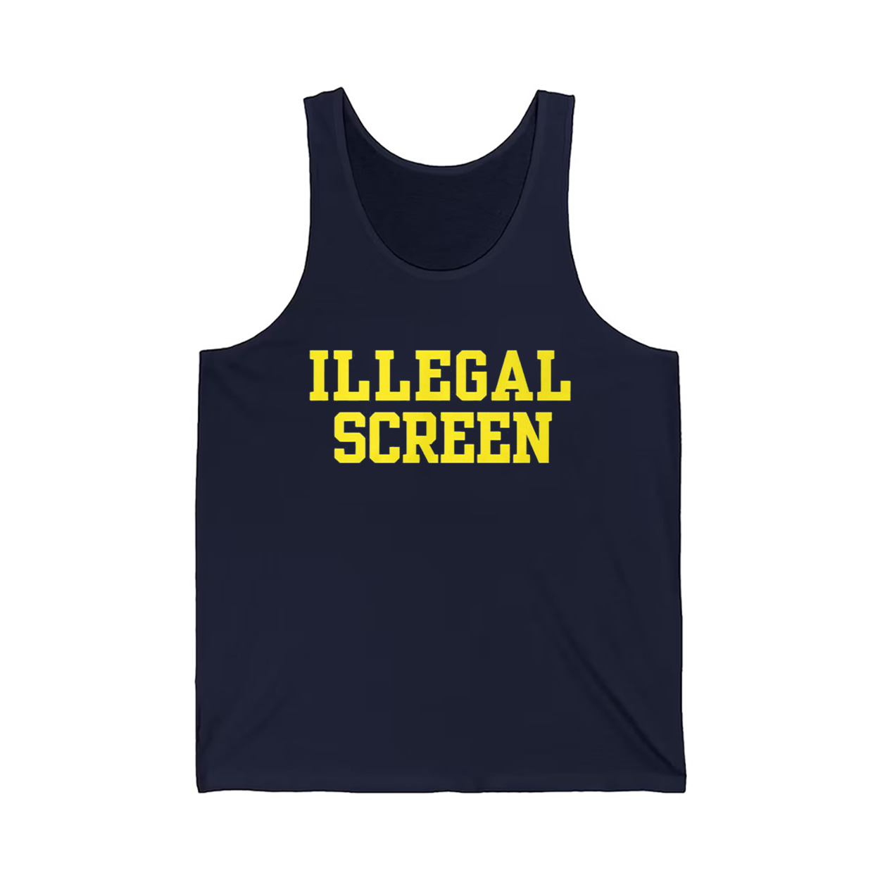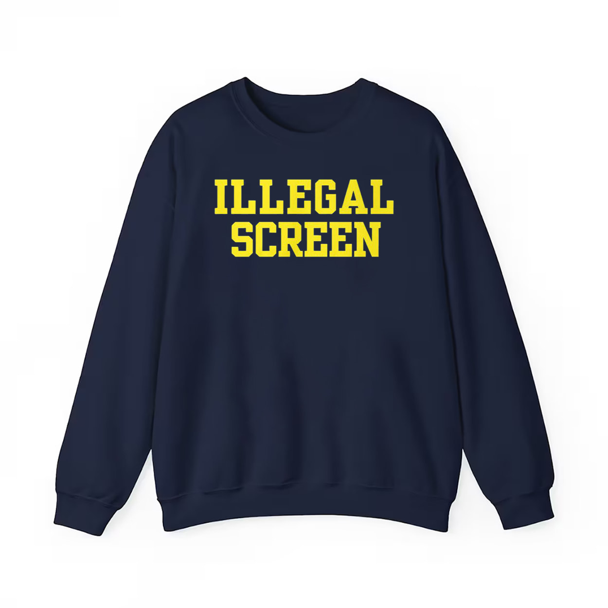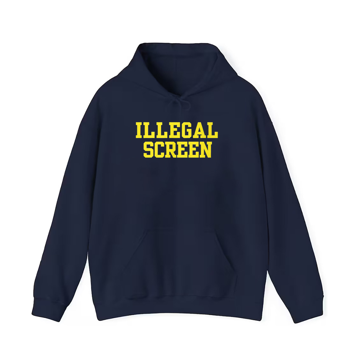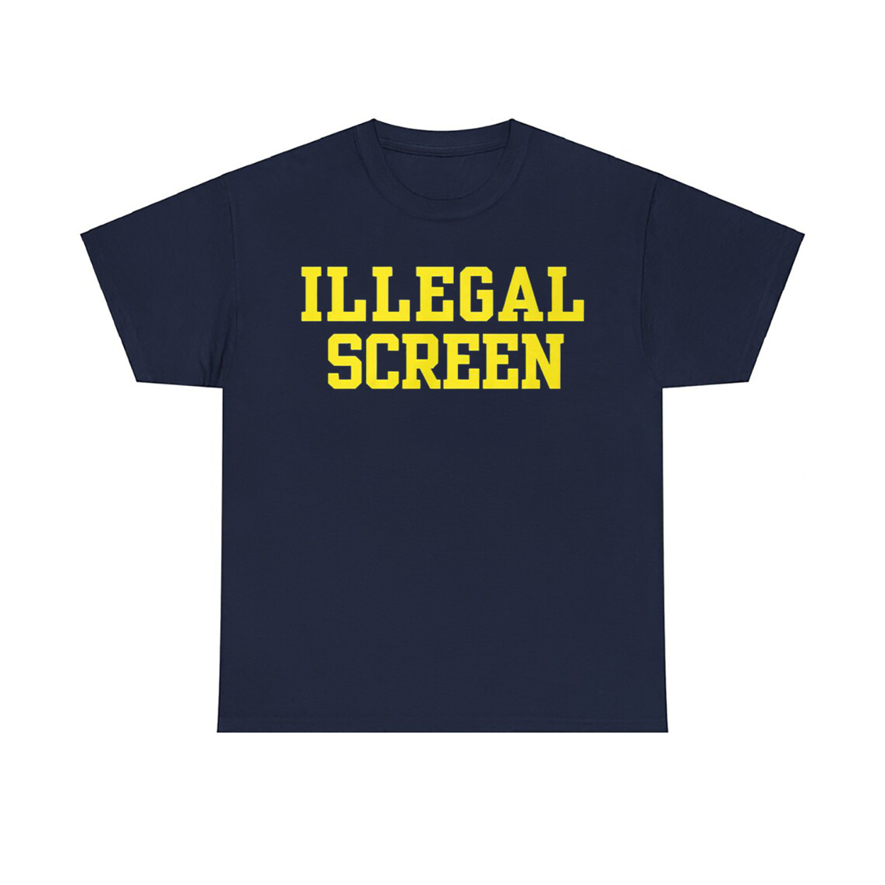Make a move that no one can ignore. This shirt features a deep navy backdrop that makes the vibrant, sunshine-yellow lettering pop like a buzzer-beater. The “ILLEGAL SCREEN” text is rendered in a classic, blocky varsity font, channeling high-energy, competitive collegiate spirit. It’s a clean, minimalist design that speaks volumes without saying a word—perfect for anyone who wants their wardrobe to have as much impact as a hard-set pick at the top of the key.