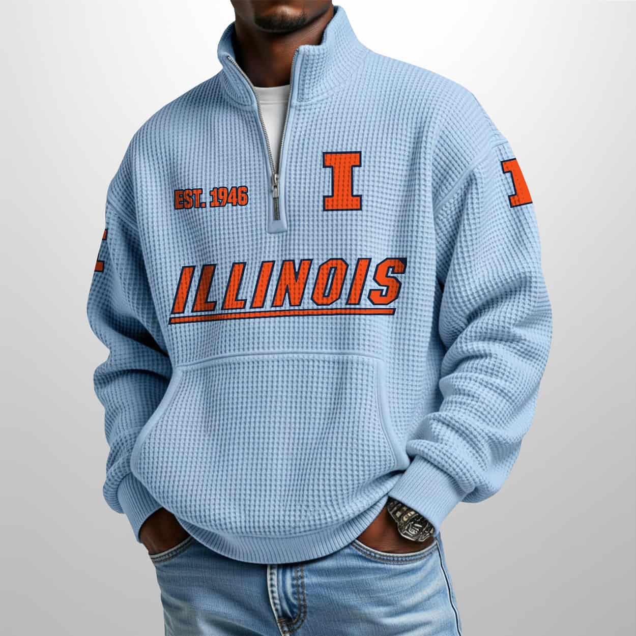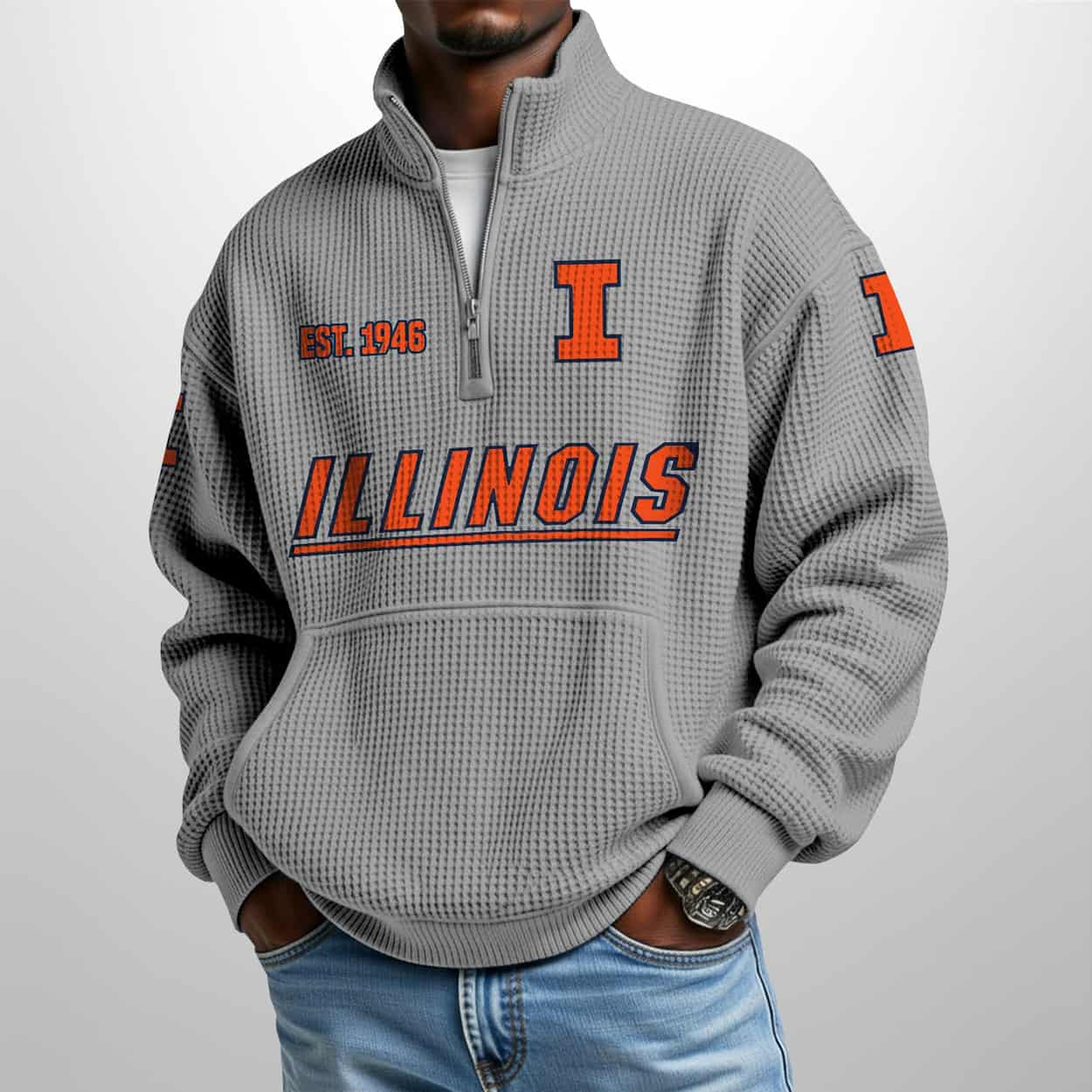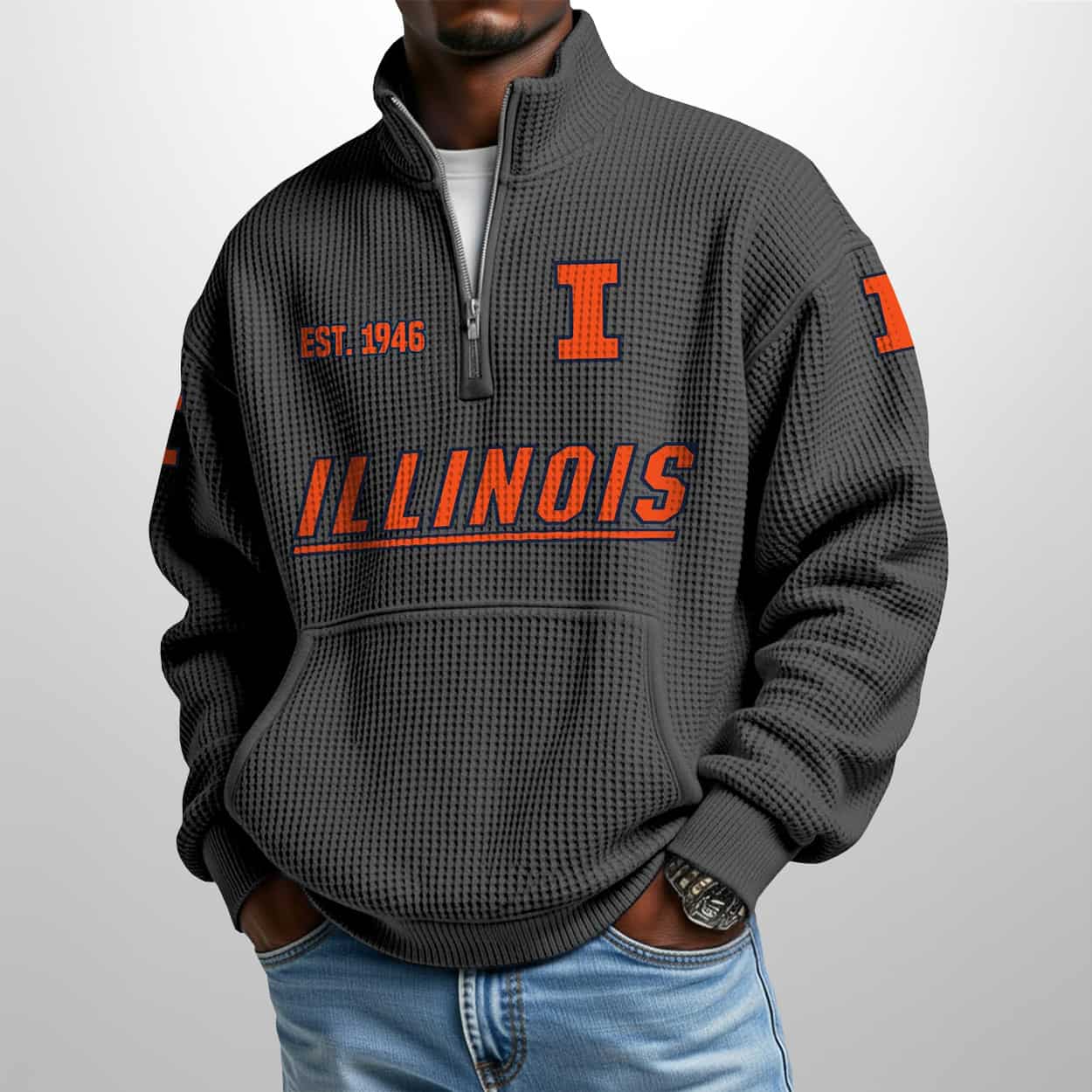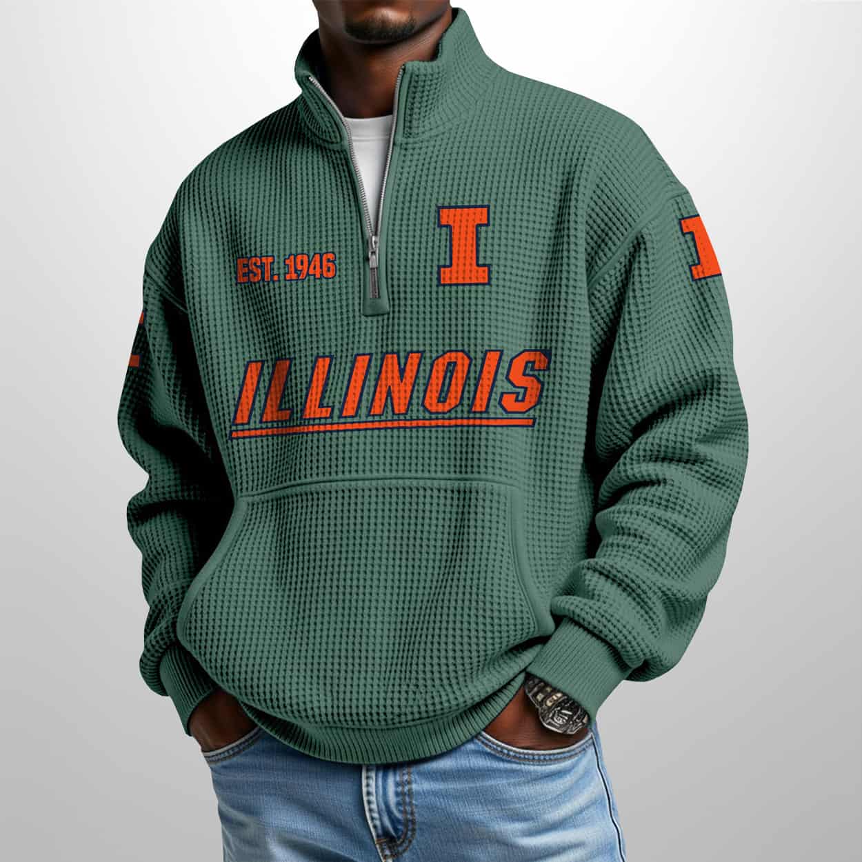 Illinois Est 1946 Waffle Stand Collar Half Zip Sweatshirt – Tradition in Every Stitch