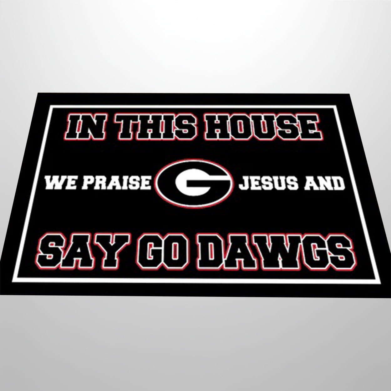 Be the first to review “In This House We Praise Jesus And Say Go Dawgs Doormat” Cancel reply