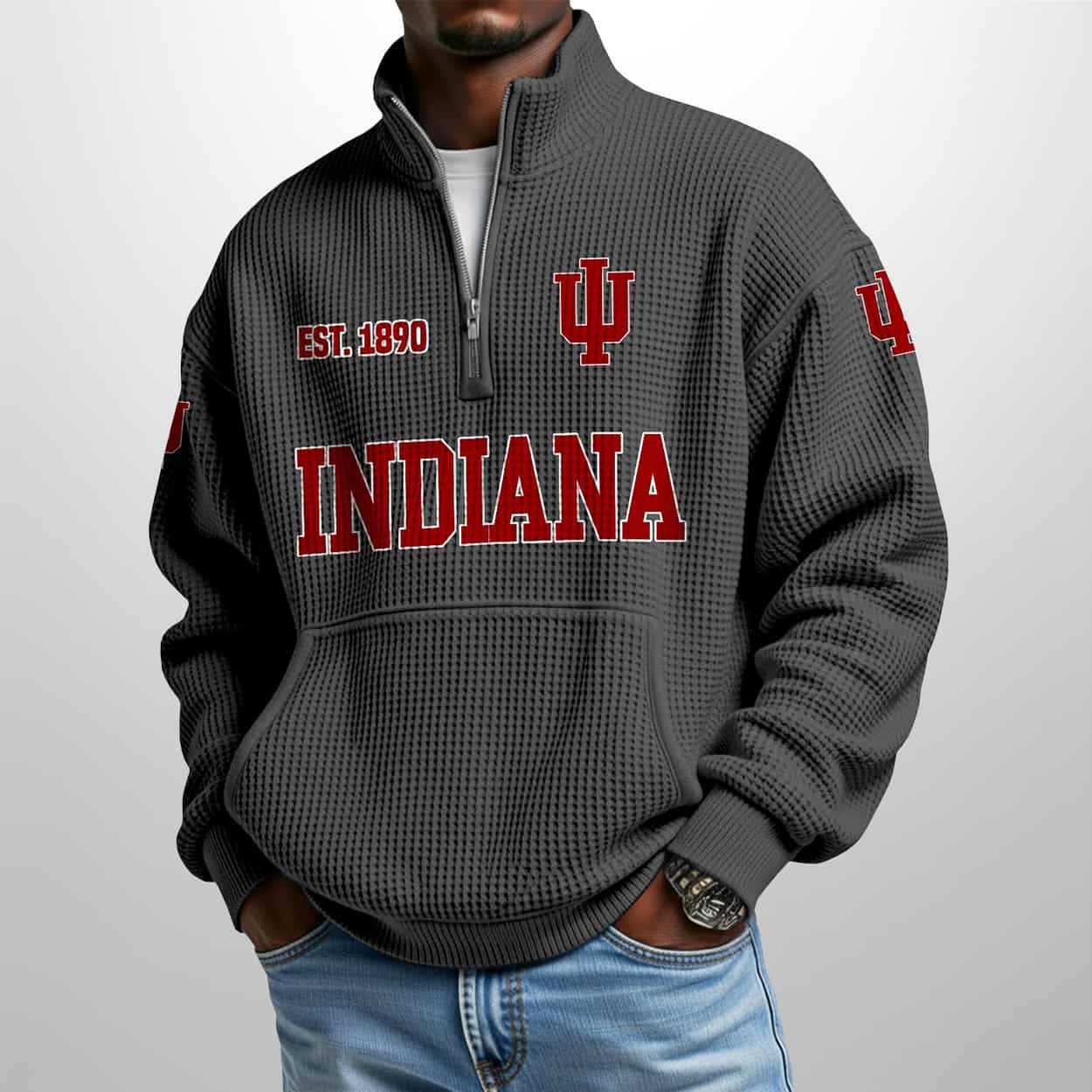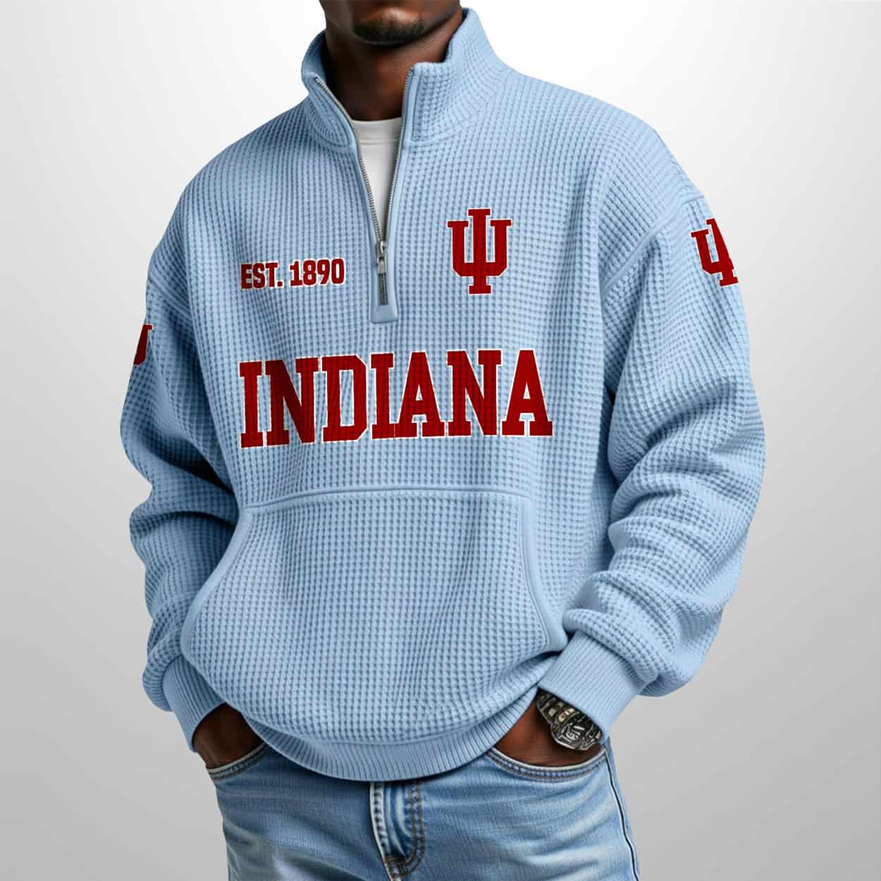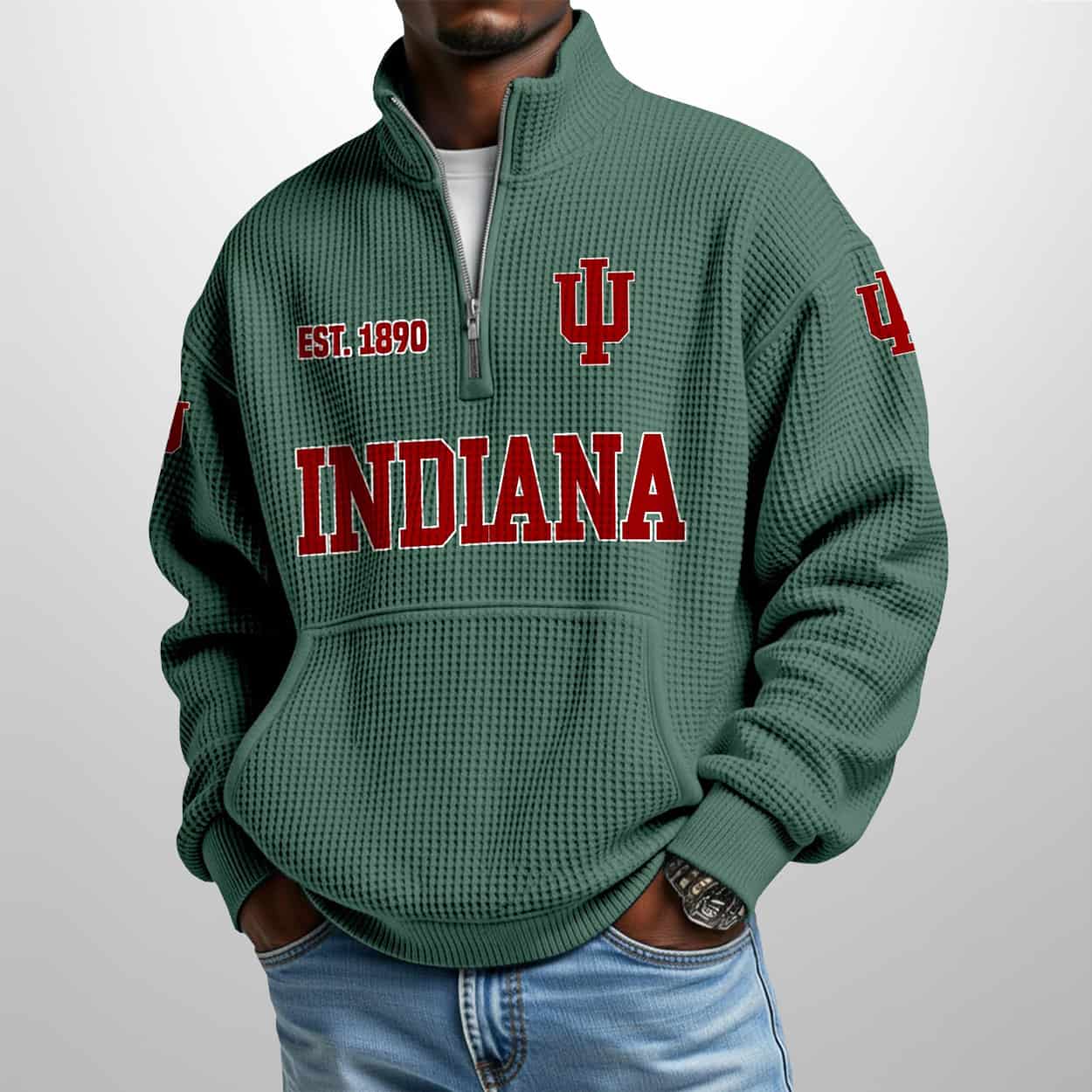 Indiana Est 1890 Waffle Stand Collar Half Zip Sweatshirt
