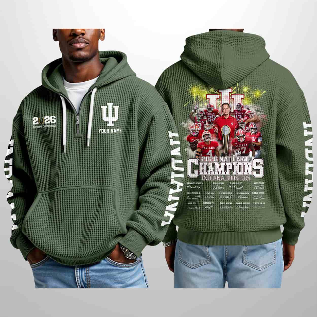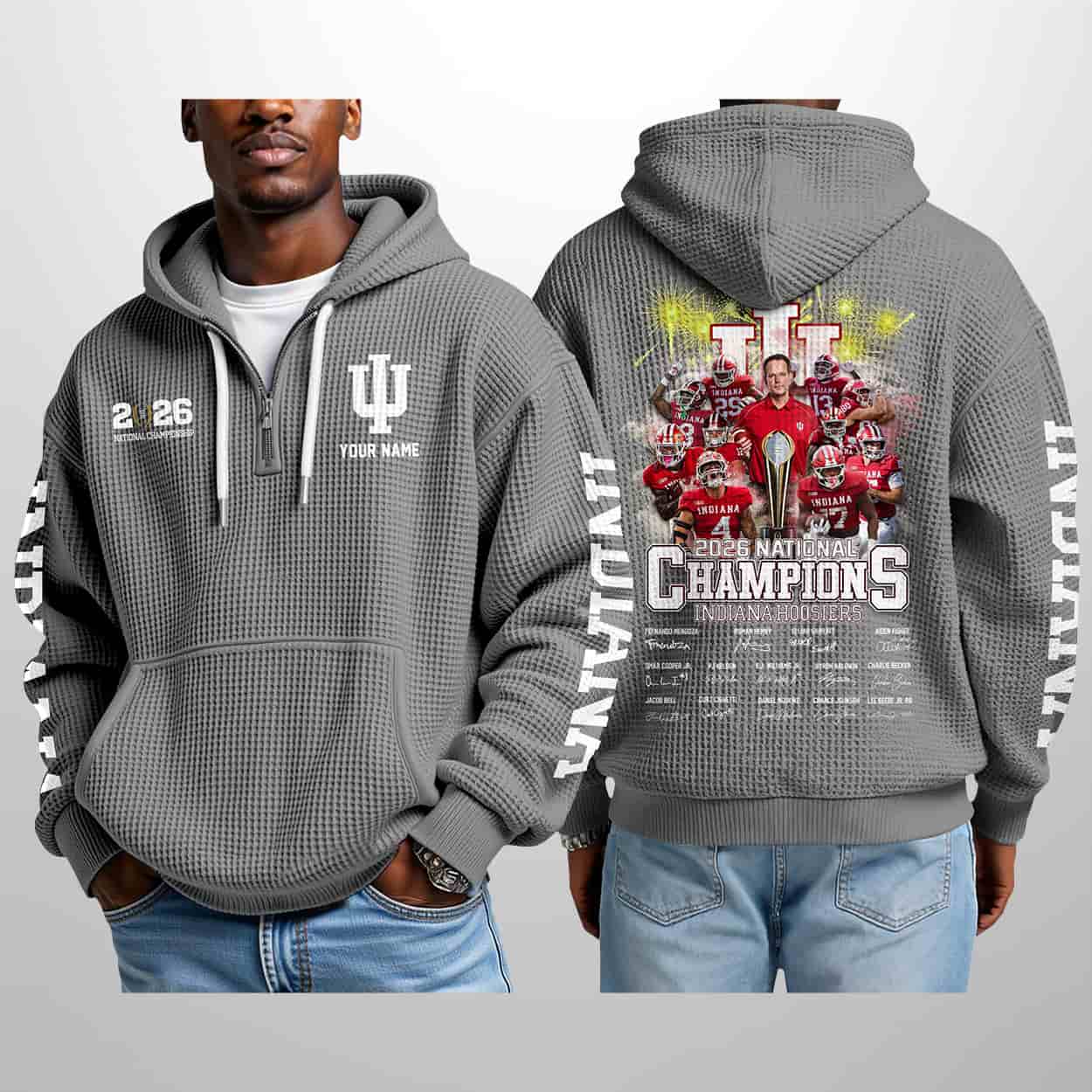 The Ultimate Victory Layer: Indiana Football 2026 CFP National Champions Quarter Zip Waffle Hoodie