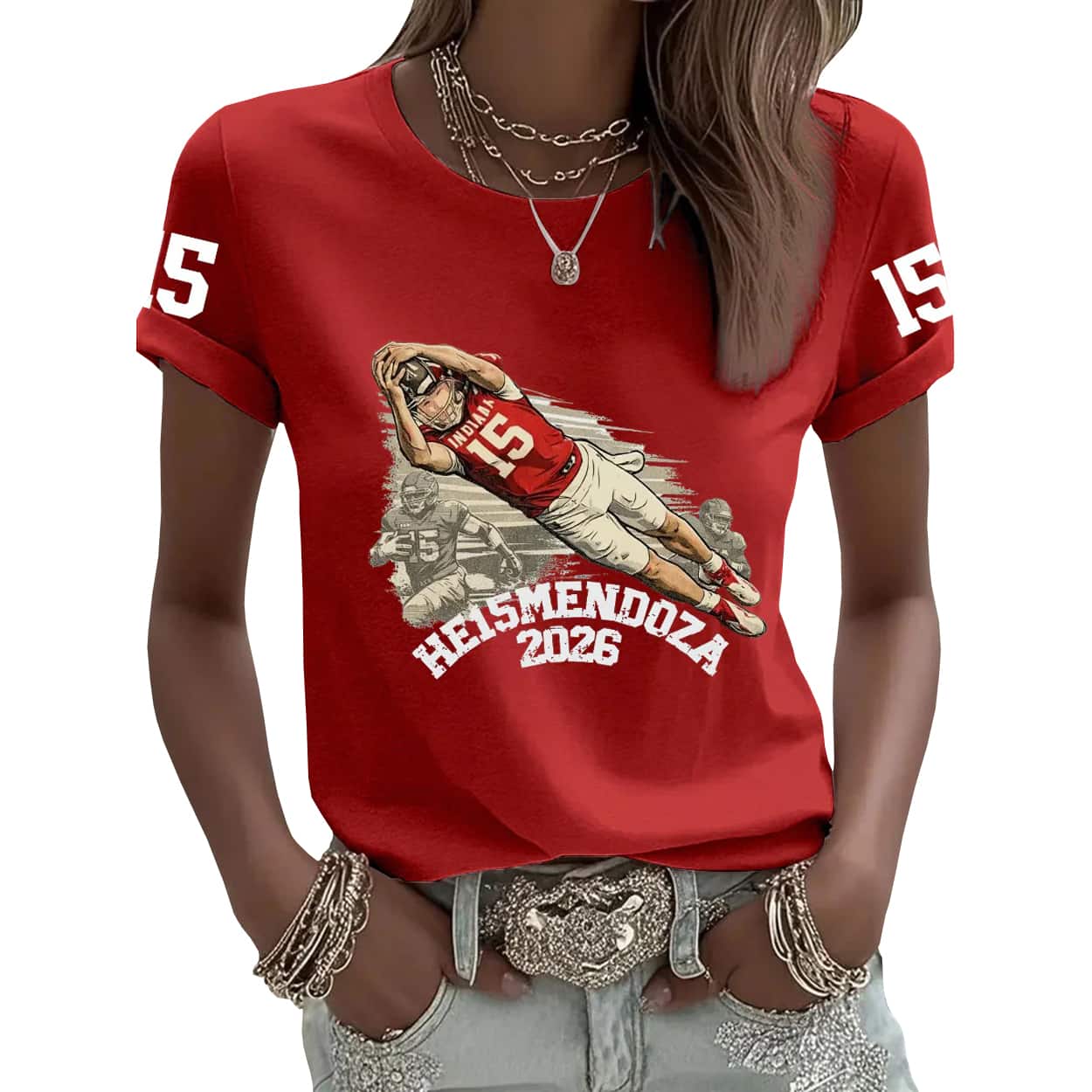The design is a playful, high-energy nod to the highest honor in college football, cleverly mashing up “Heisman” with the name “Mendoza.” The shirt creates a unique “He15mendoza” moniker that signals a 2026 campaign fueled by ambition and elite talent. It’s a statement piece for the “bold thinkers”—the fans who aren’t afraid to dream big and call the trophy win early.
