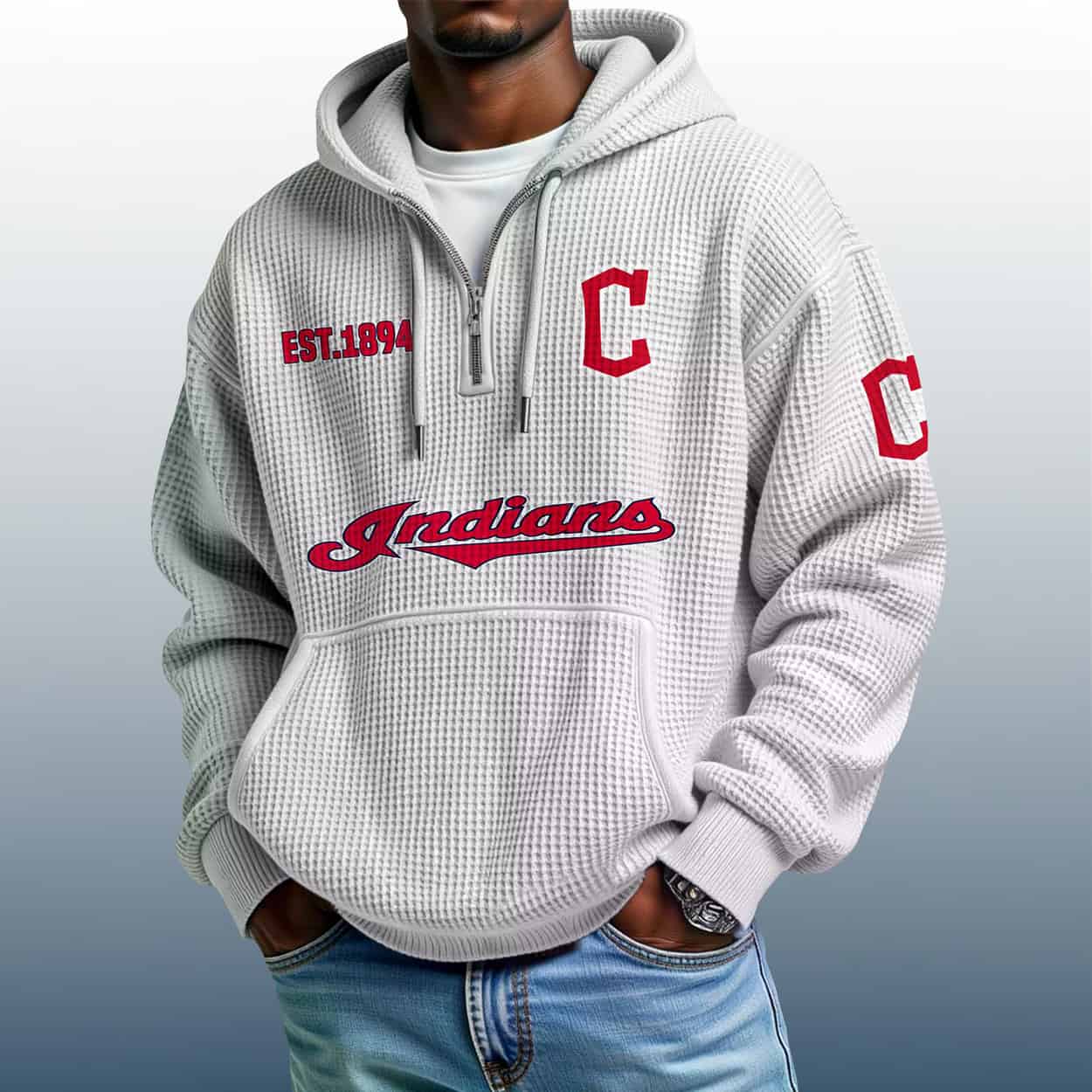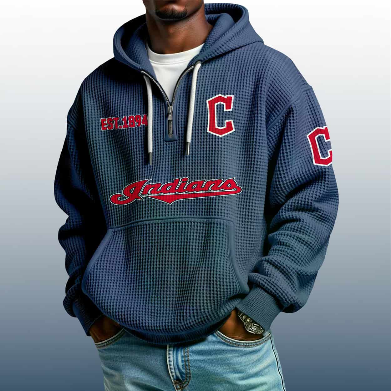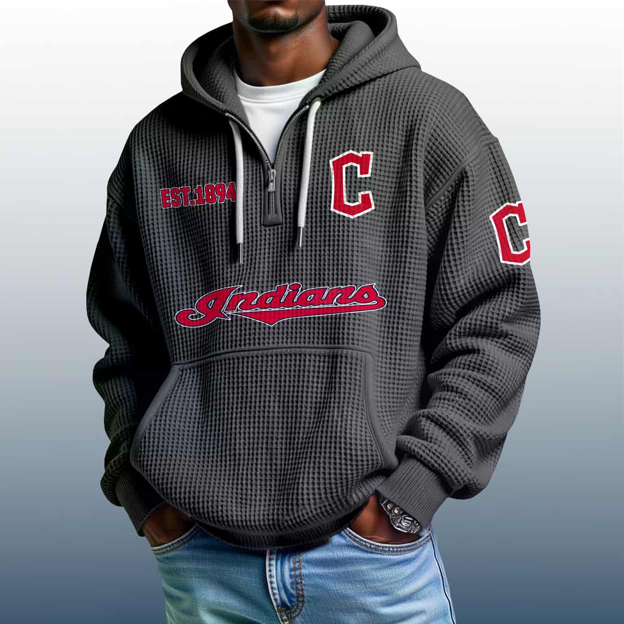Ready to elevate your fan wardrobe? Grab the Indians Est 1894 Quarter Zip Waffle Hoodie and let your style speak volumes. It’s not just a hoodie — it’s a legacy you can wear.