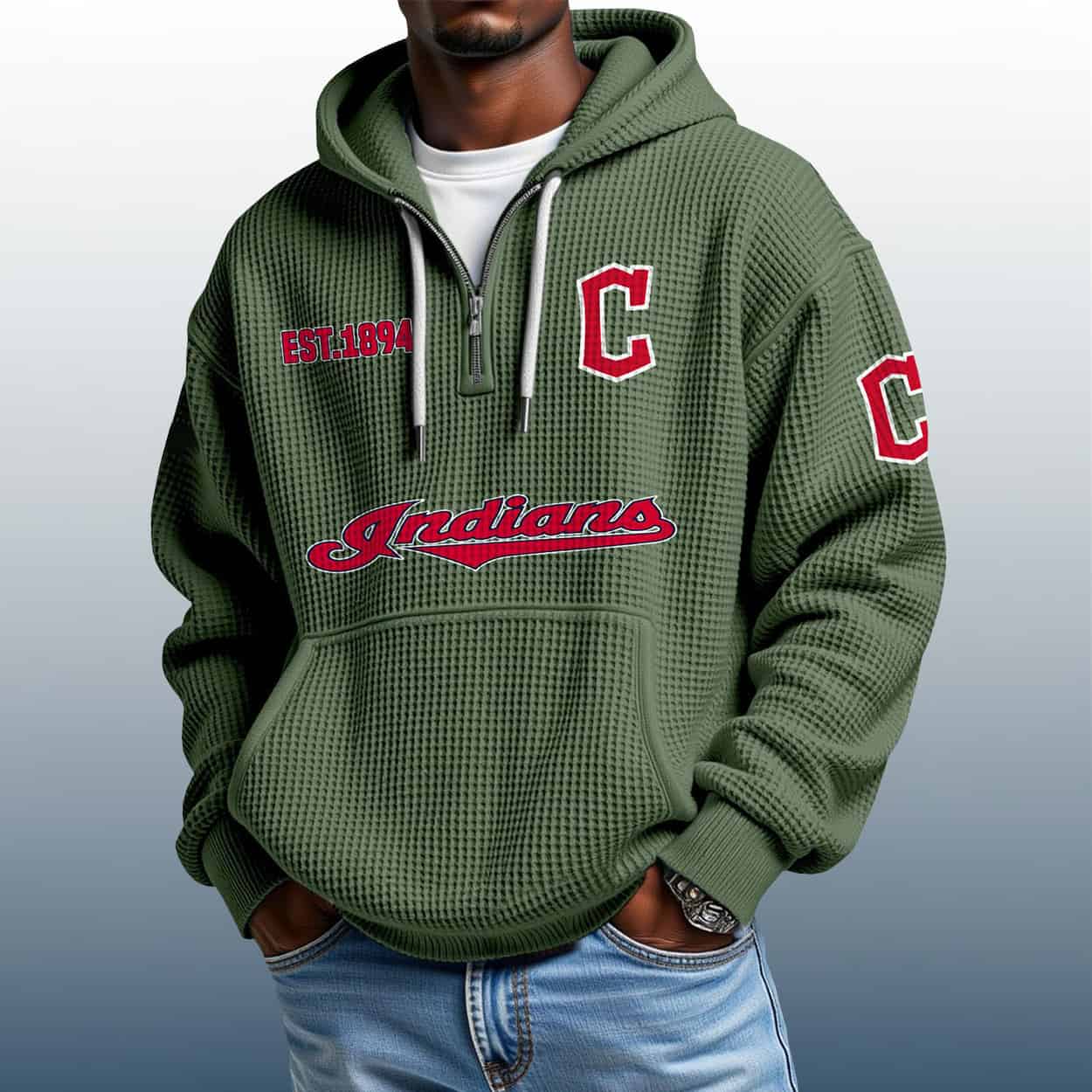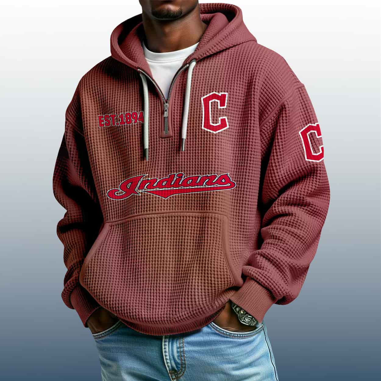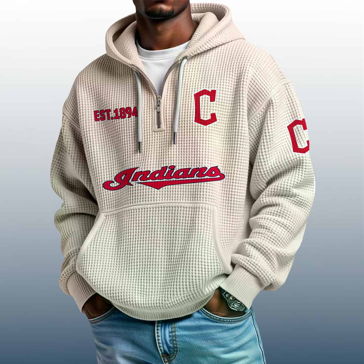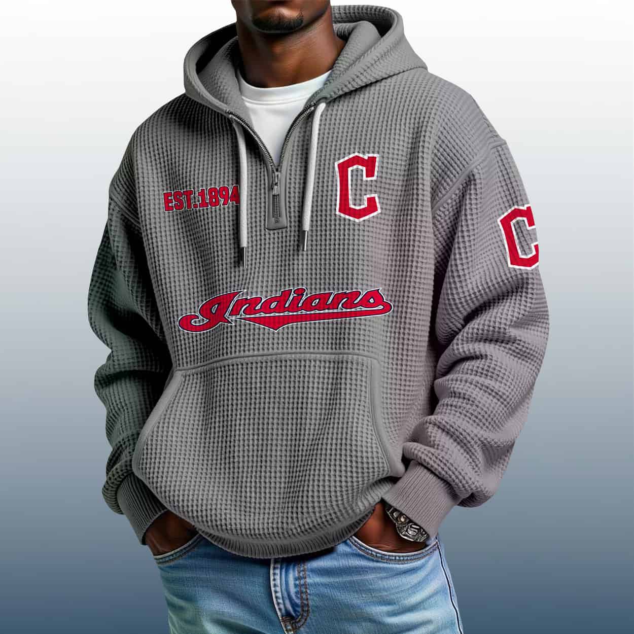 Ready to elevate your fan wardrobe? Grab the Indians Est 1894 Quarter Zip Waffle Hoodie and let your style speak volumes. It’s not just a hoodie — it’s a legacy you can wear.