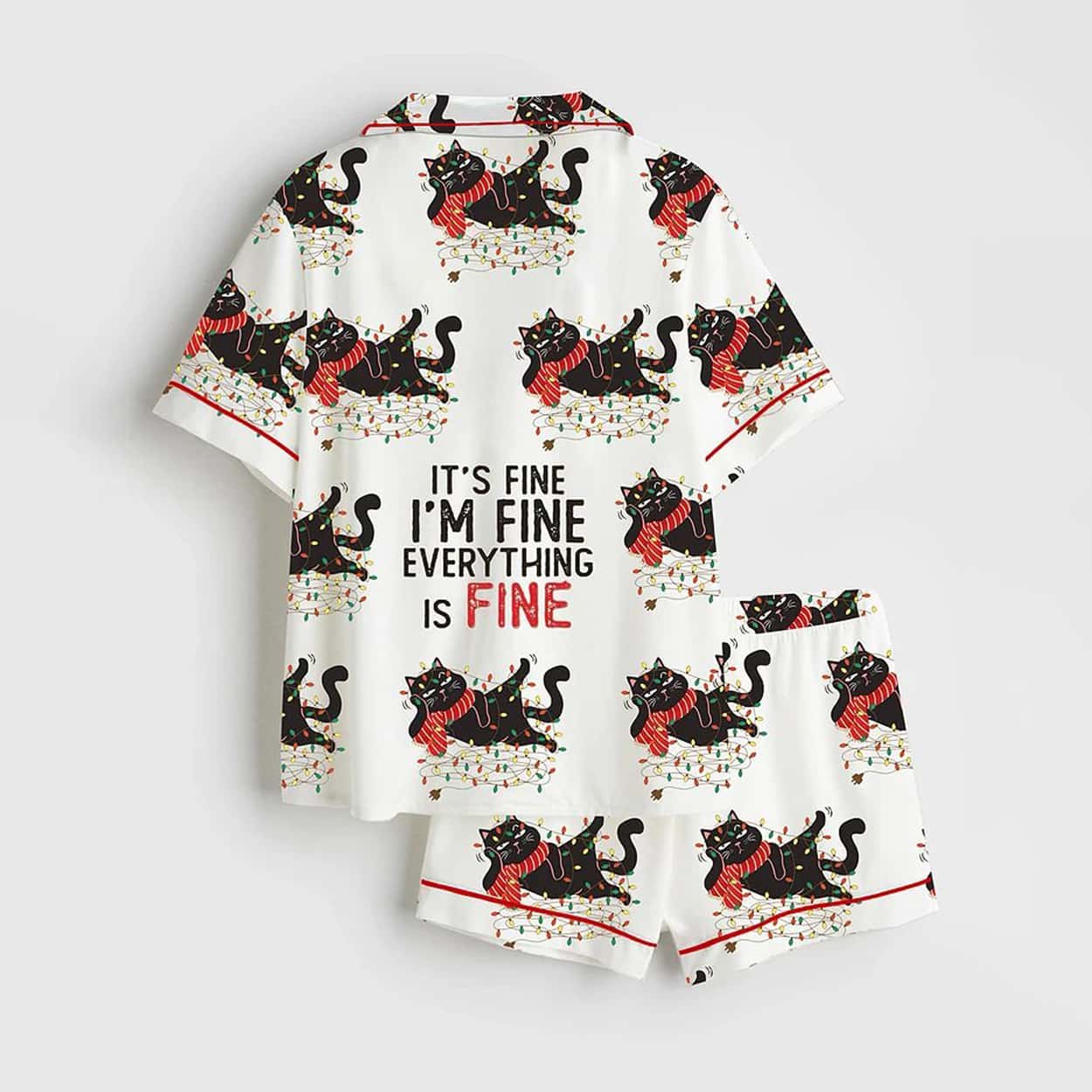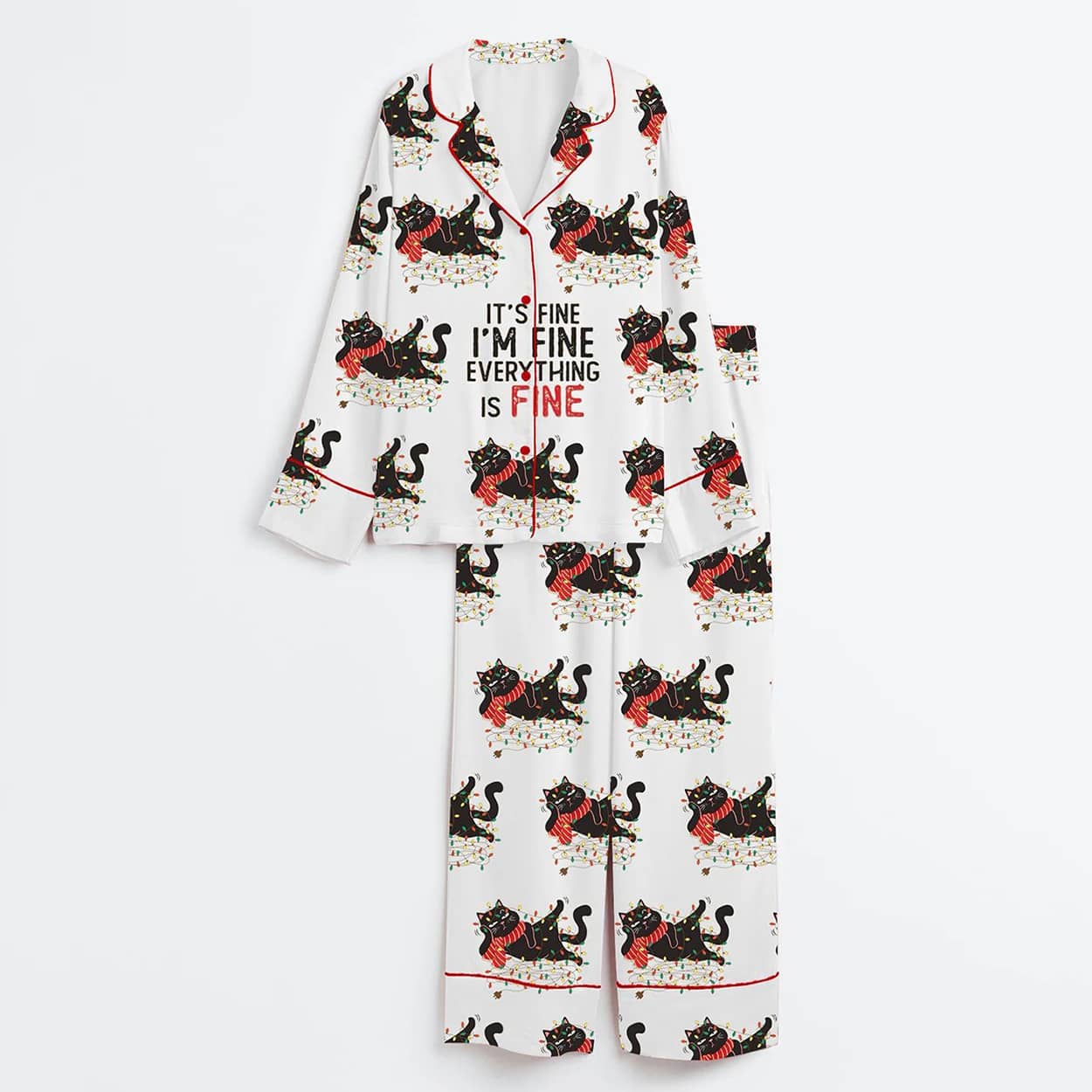 It’s Fine I’m Fine Everything Is Fine Christmas Cat Satin Pajama Set