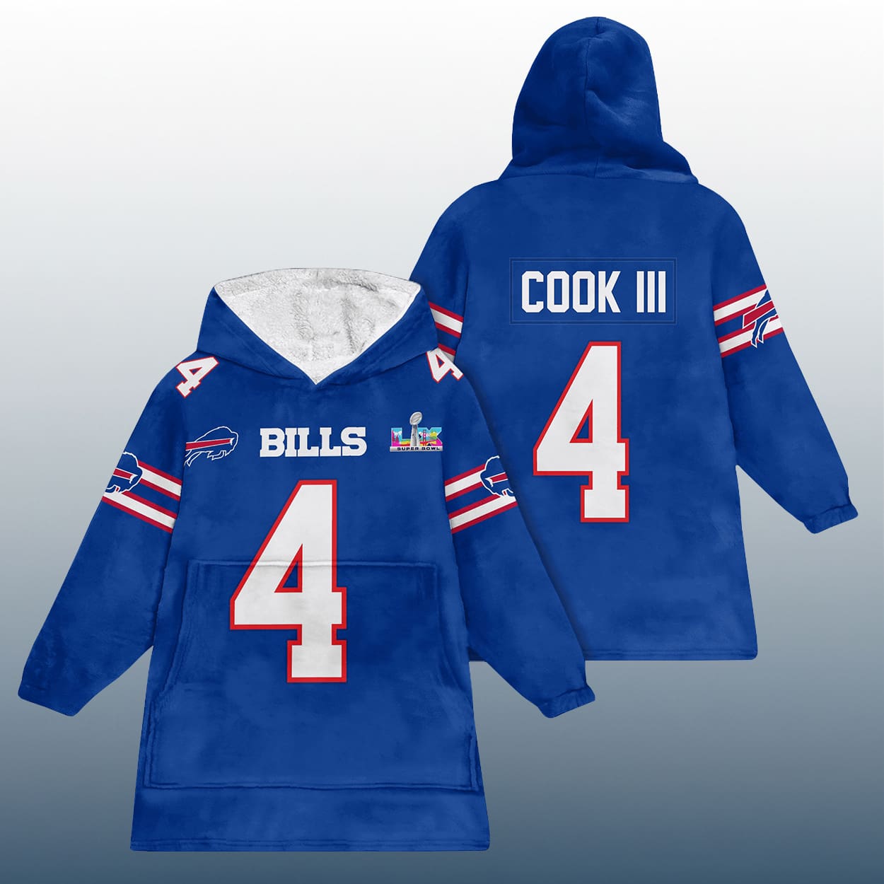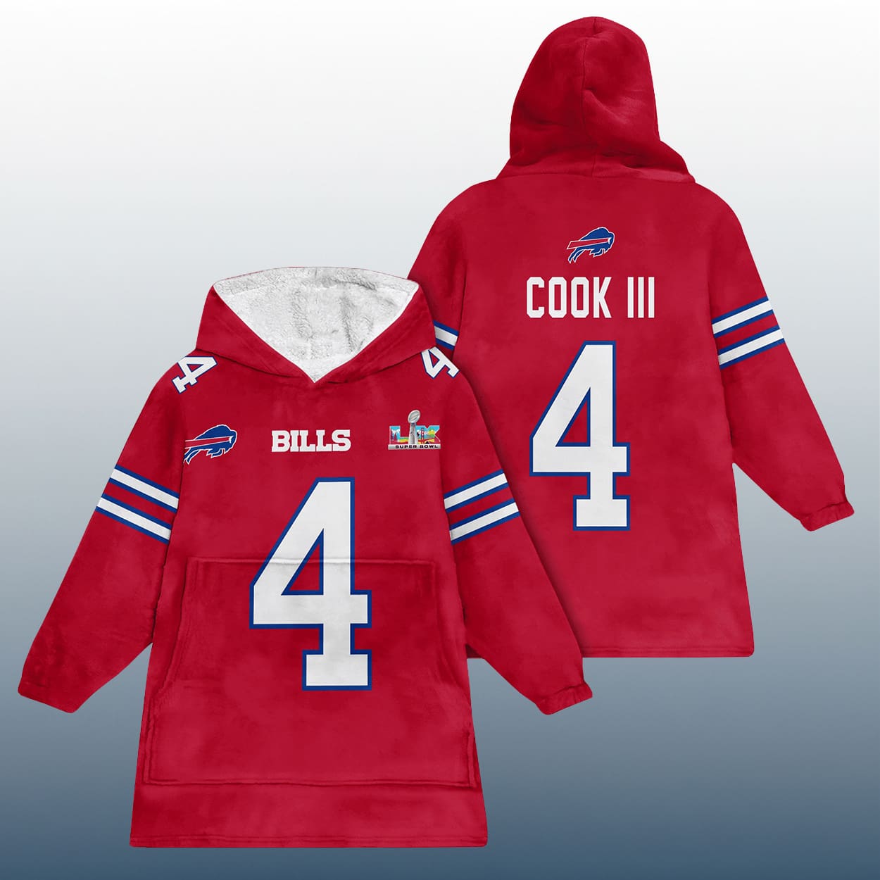 Amp up your fan game with the J.C 4 Buffalo Football SB LX Unisex Blanket Hoodie—oversized, bold, and built for Bills Mafia pride.