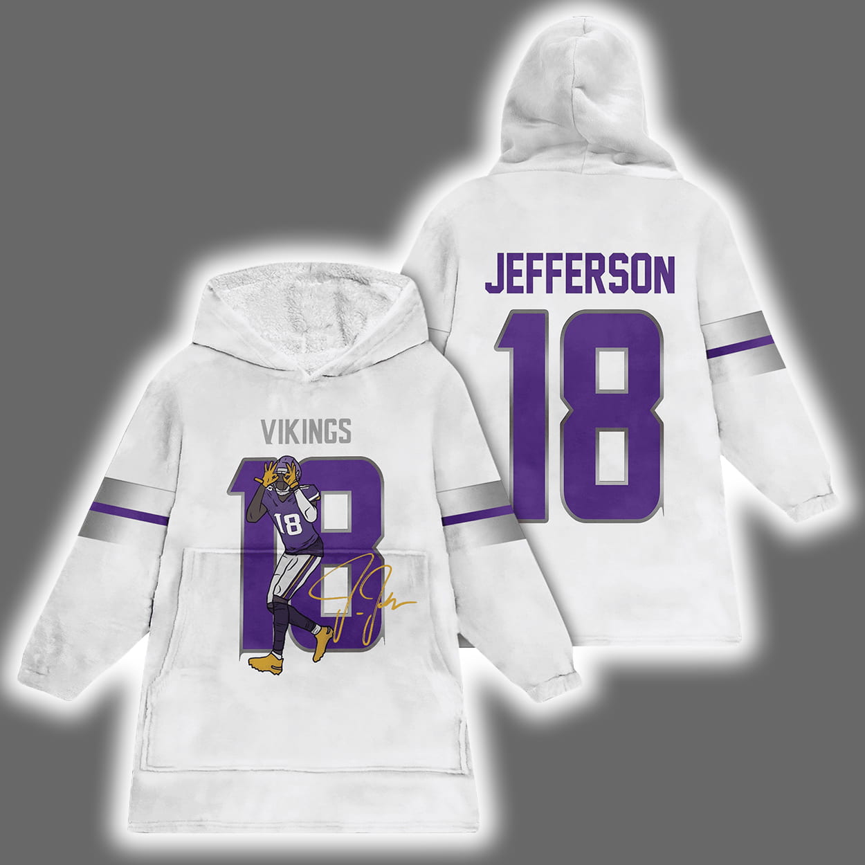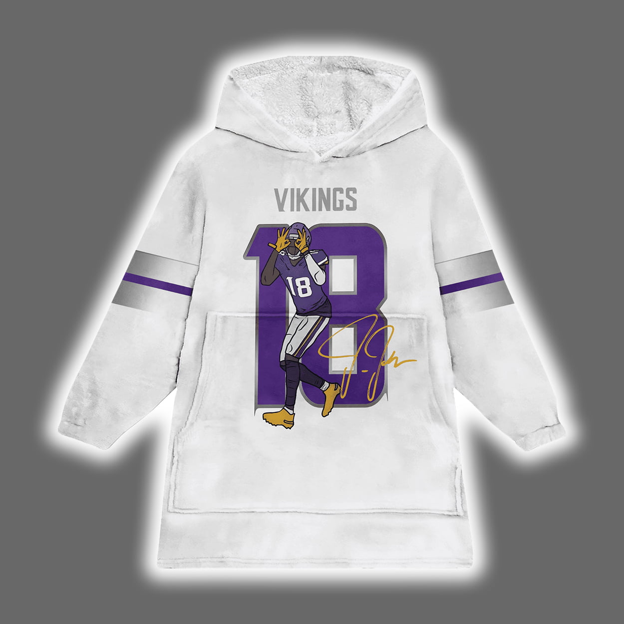 Celebrate the swagger of Justin Jefferson with the J.J 18 Minnesota Football Signature Unisex Blanket Hoodie—where bold design meets unbeatable comfort. A must-have for fans who love flair and football.