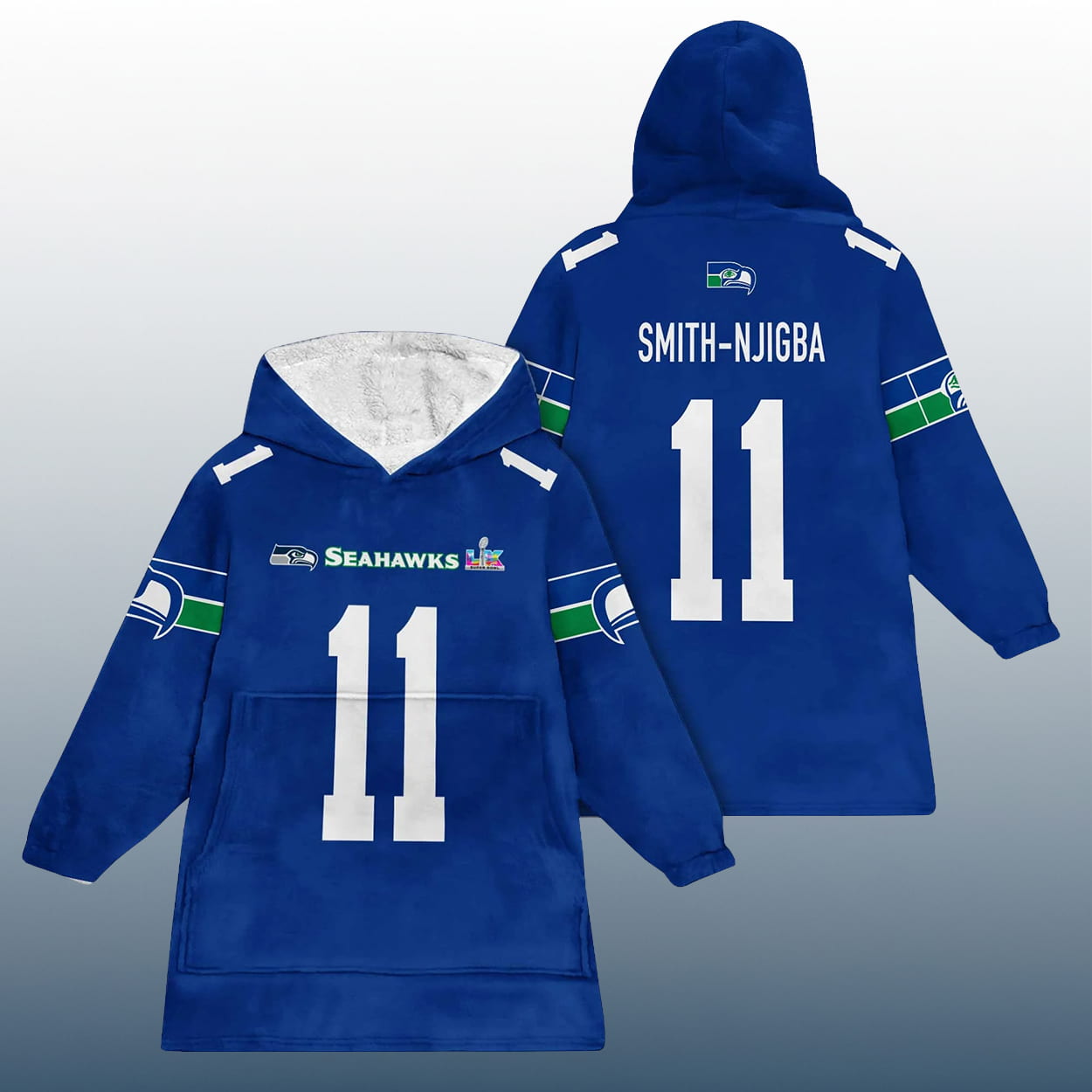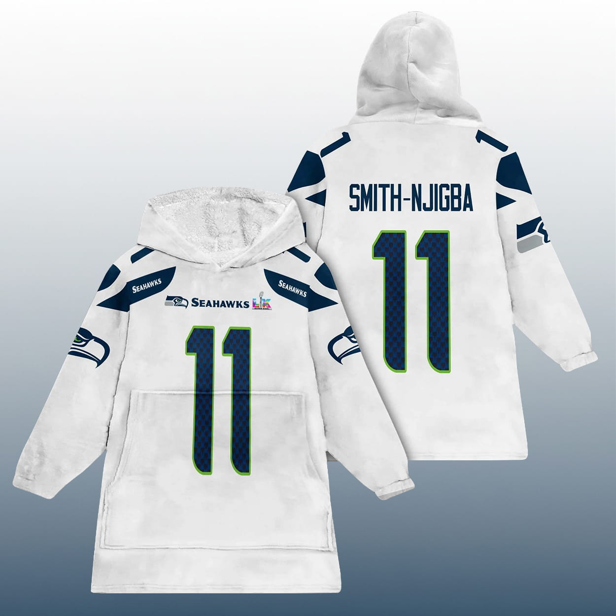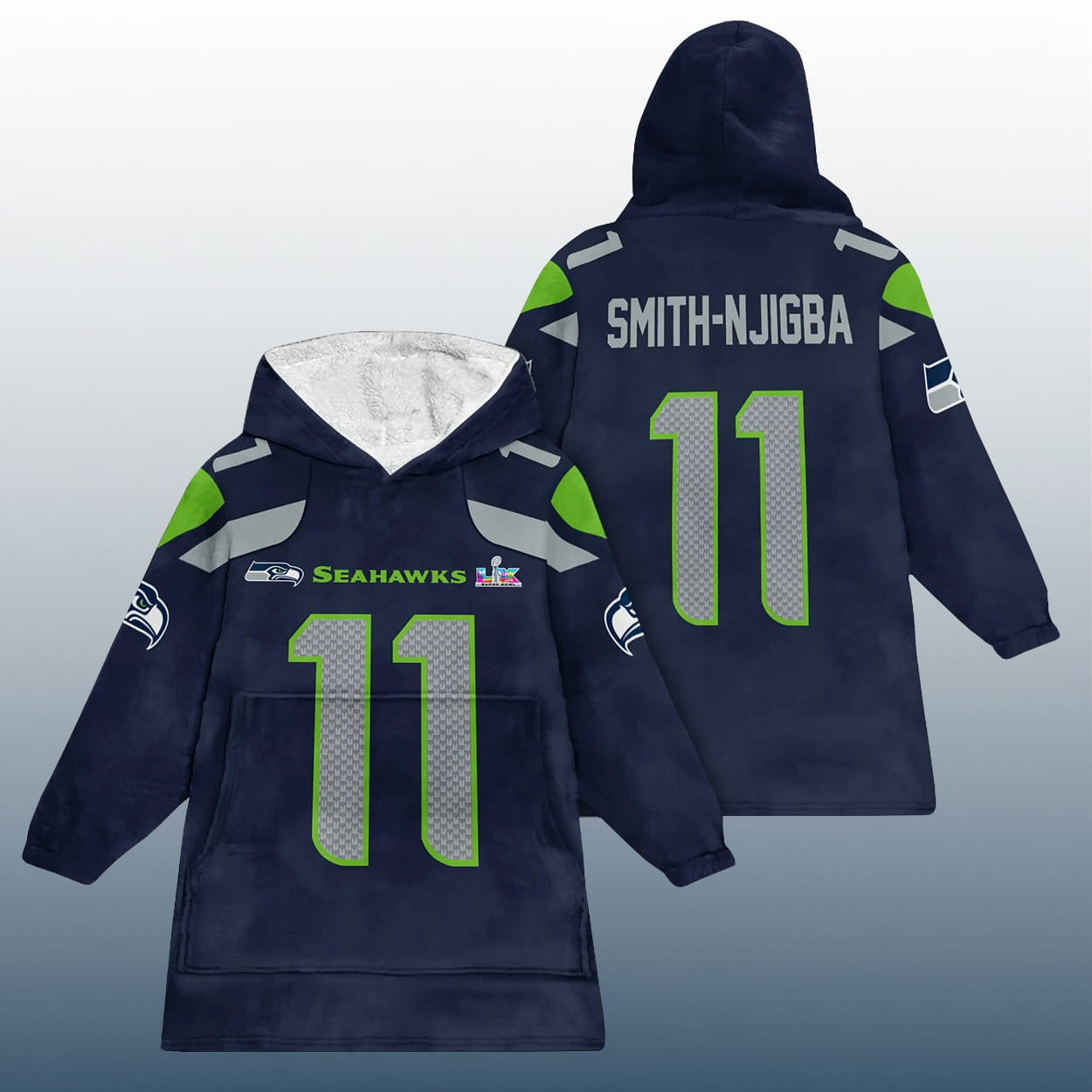Wrap yourself in team pride with the J.S 11 Seattle Football SB LX Unisex Blanket Hoodie—where comfort meets bold fandom in a jersey-inspired design that celebrates wide receiver Jaxon Smith-Njigba.