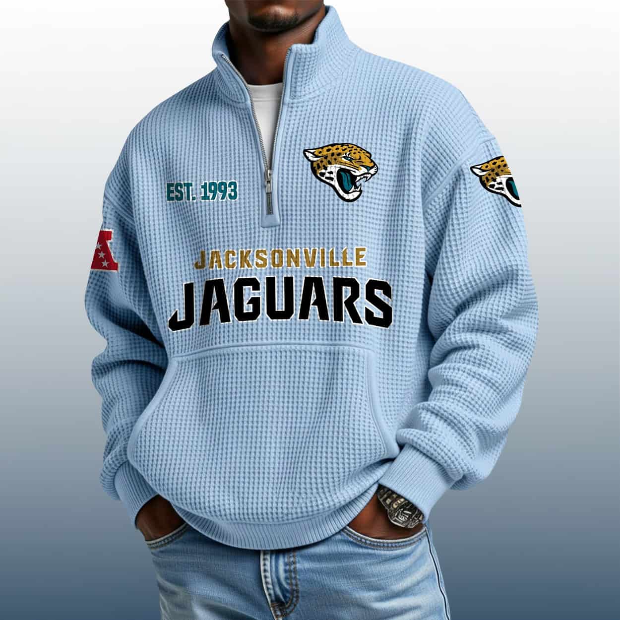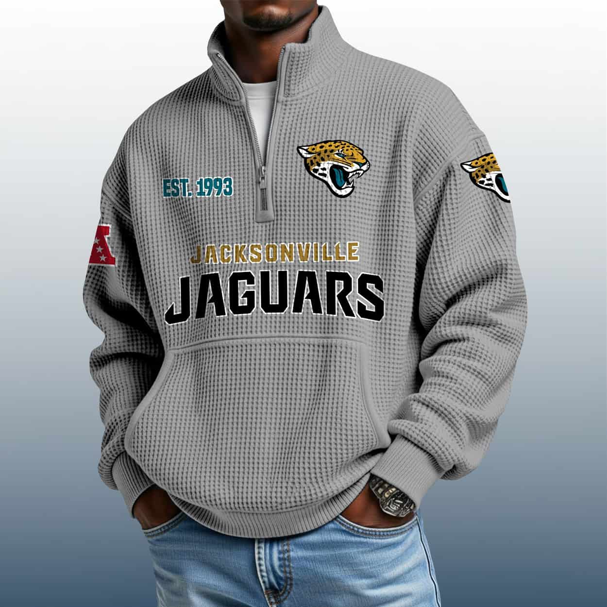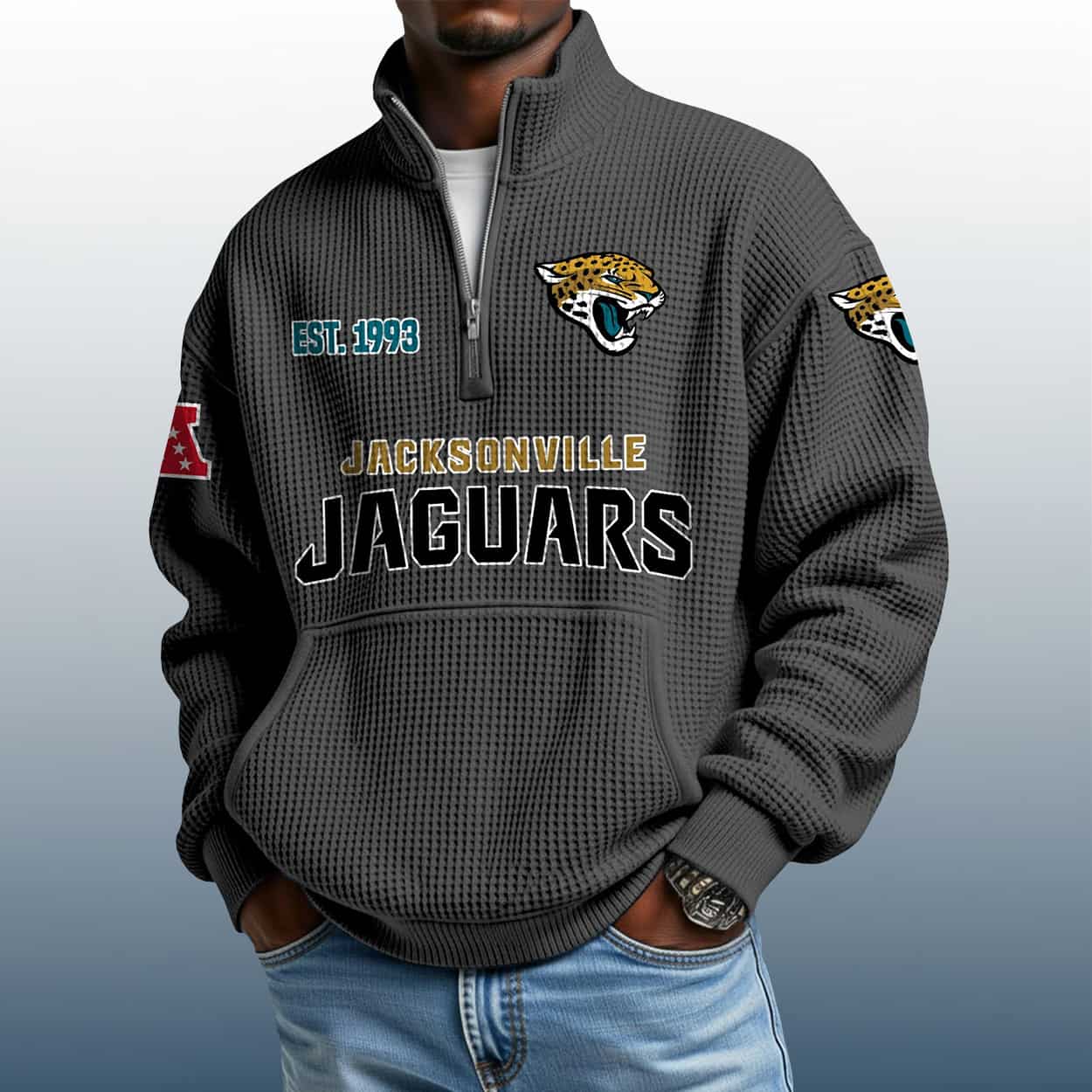 Fierce, Fresh, and Fan-Focused: The Jaguars Est 1993 Stand Collar Half Zip Waffle Sweatshirt That Roars