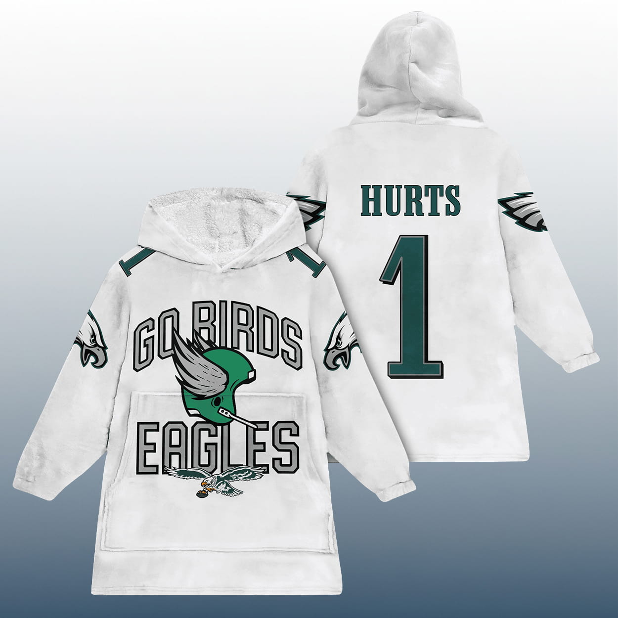 Fly Like Hurts: The Jalen Hurts 1 Go Birds Eagles Unisex Blanket Hoodie