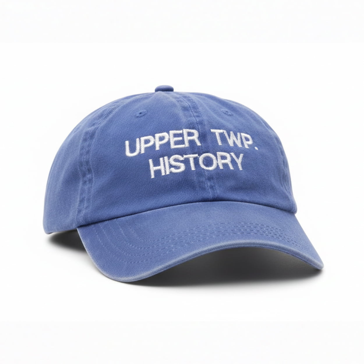 This isn’t just a baseball cap—it’s a conversation starter. This hat features a crisp blue canvas crowned with white embroidered text that reads “UPPER TWP. HISTORY.” With its classic silhouette and forward-facing brim, it’s the kind of hat that feels equally at home on a beach boardwalk or a film set. Whether you’re a die-hard history buff or just love a good story, this cap brings a playful edge to your everyday look.