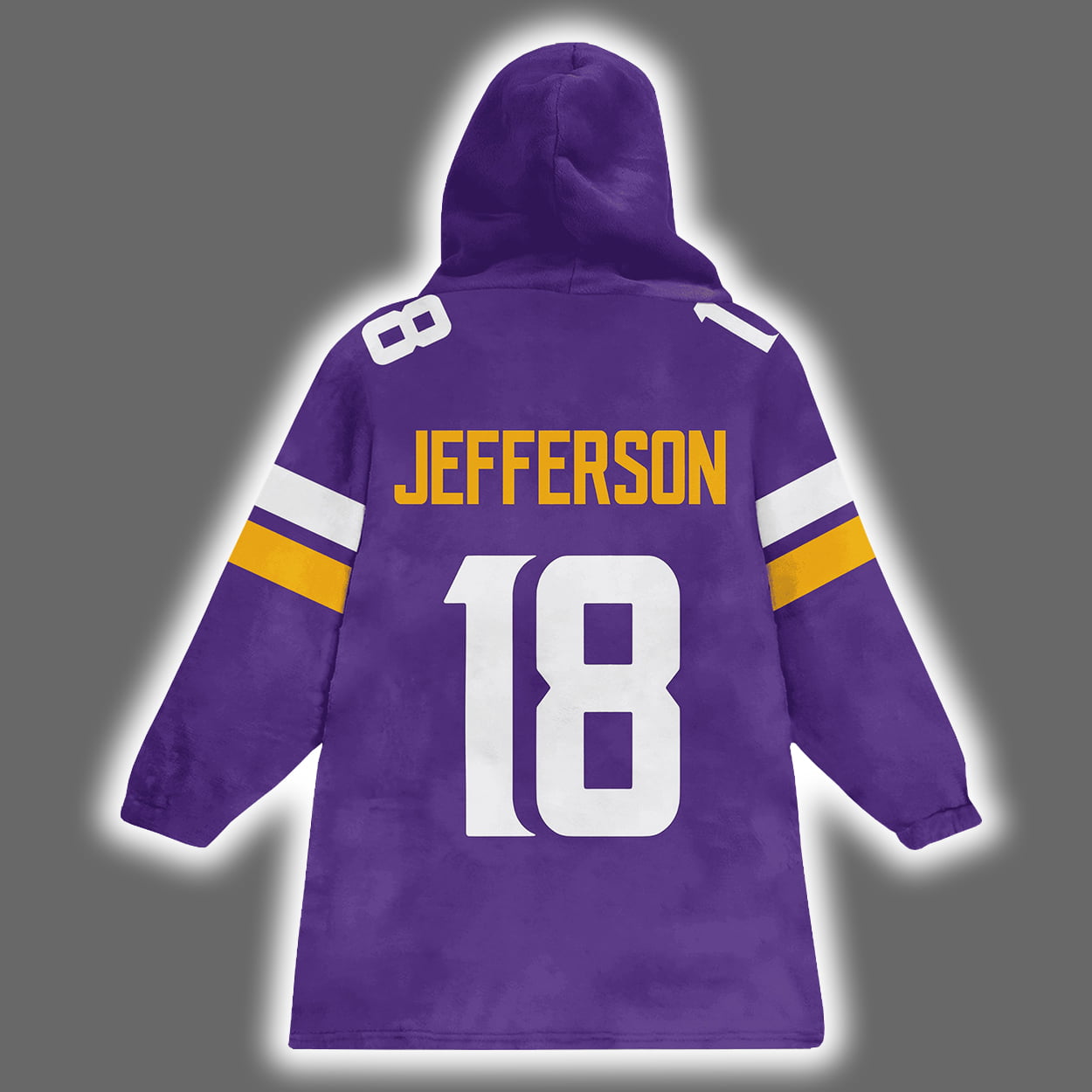 Justin Jefferson 18 Minnesota Football Signature Unisex Blanket Hoodie: Catch Game Day Vibes in Viking Style