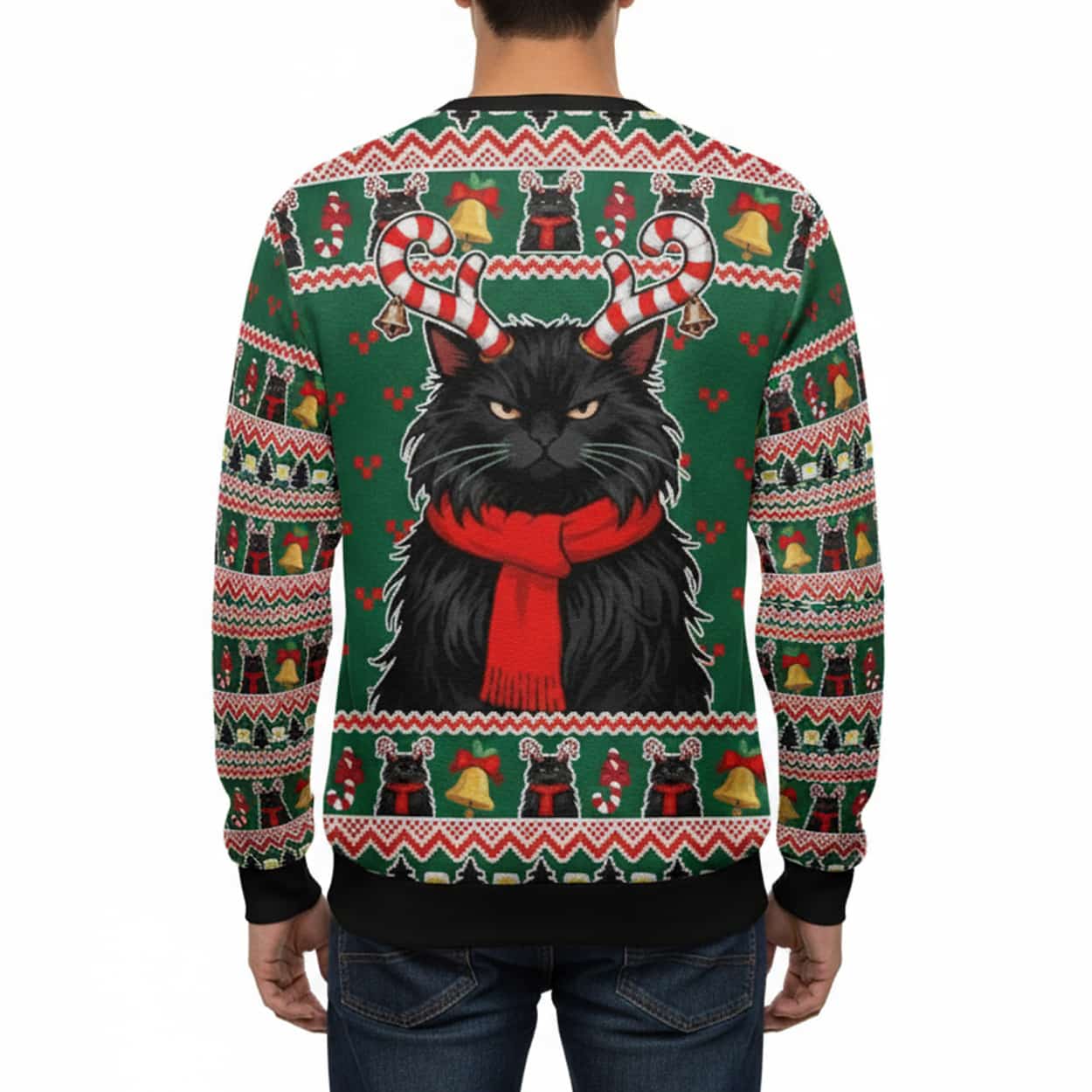 Don’t settle for a basic holiday look. Let your inner anti-hero shine! Add the Krampus Black Cat Ugly Christmas Sweater to your collection today and show off your wonderfully wicked holiday spirit!