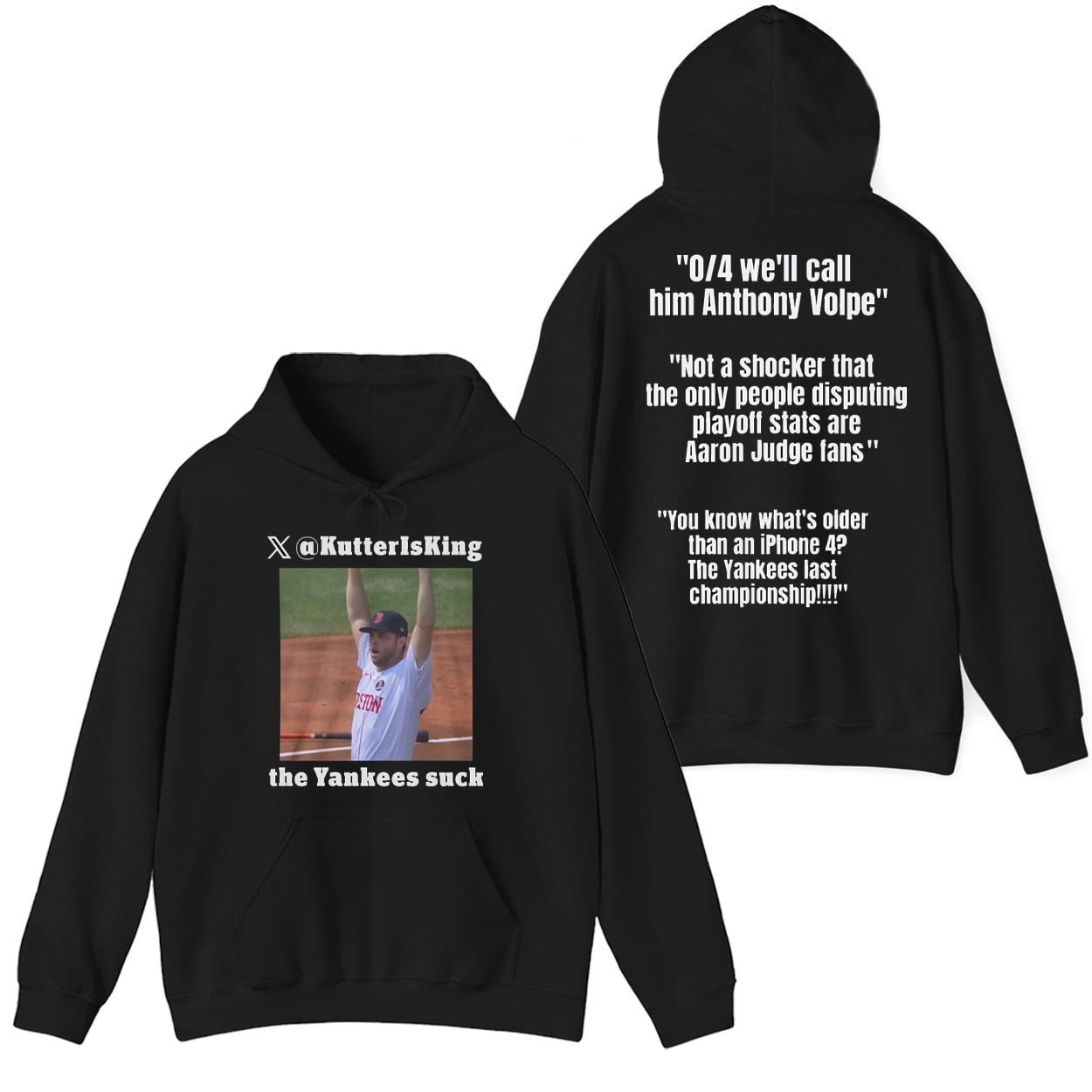 This shirt was born from a moment that Red Sox Nation won’t forget — Kutter’s celebration, a snapshot of pure Boston bravado. It’s a tribute to the fans who live for the rivalry, who chant “Yankees Suck” with pride, and who thrive on the chaos of sports banter. The design blends meme culture with classic baseball smack talk, making it perfect for those who love their fandom loud and unfiltered.