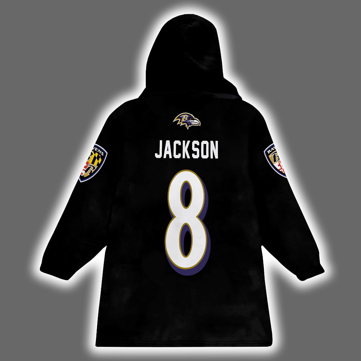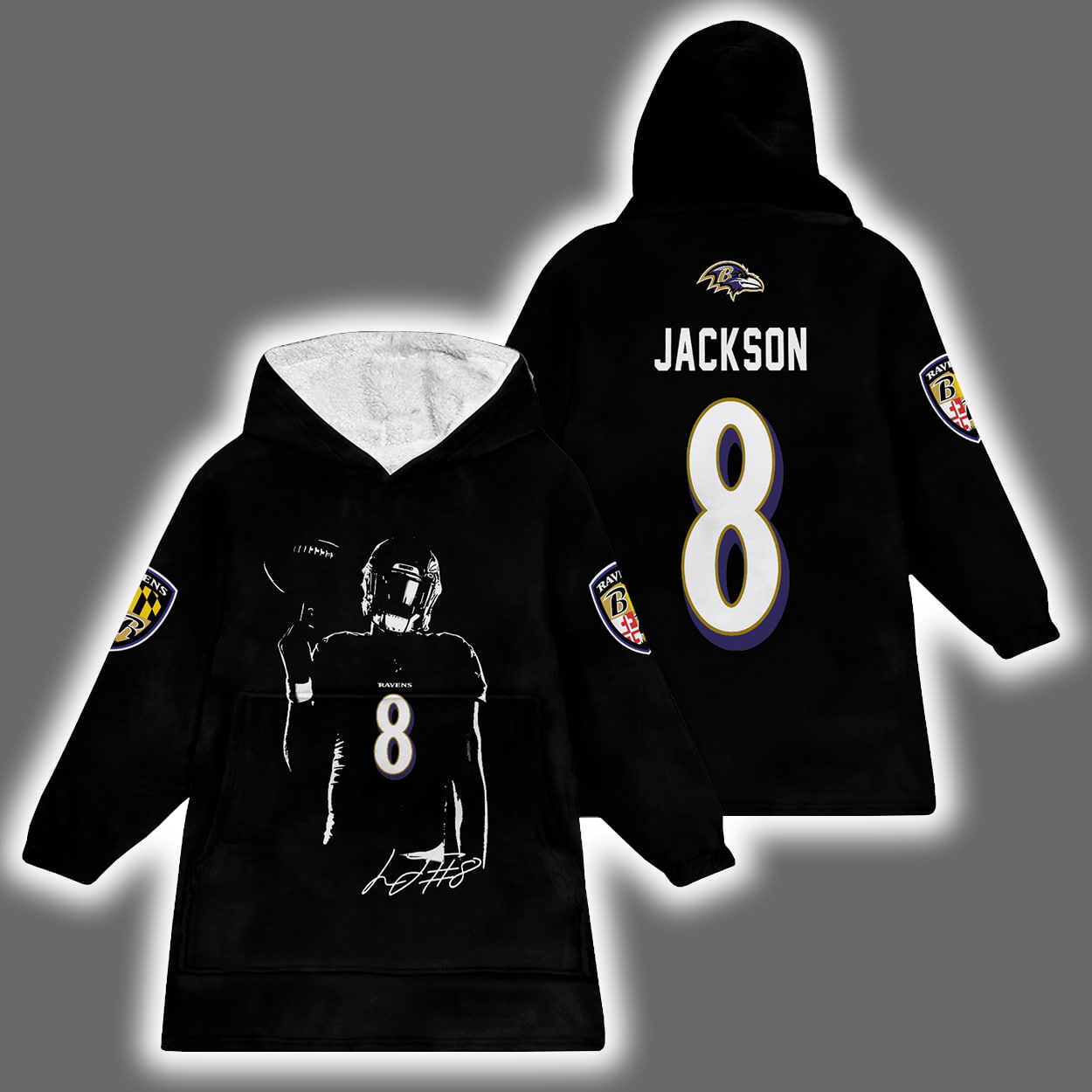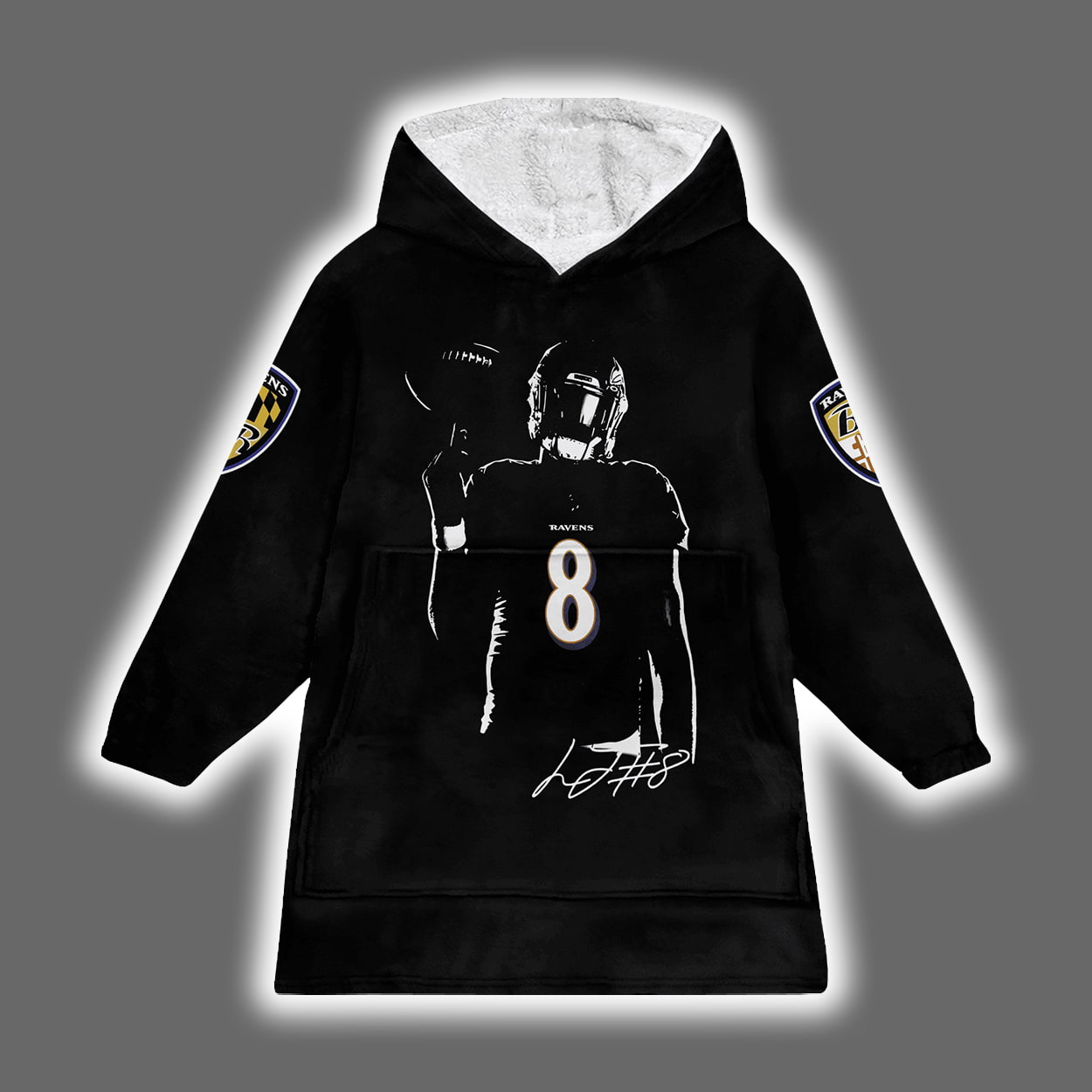 Show off your Ravens pride with the L.J 8 Baltimore Football Unisex Blanket Hoodie—featuring bold graphics, signature style, and a tribute to Lamar Jackson that’s as dynamic as his game.