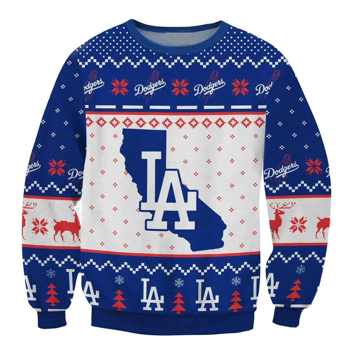 LA Dodgers State Shape Ugly Christmas Sweater — California Pride Meets Holiday Cheer