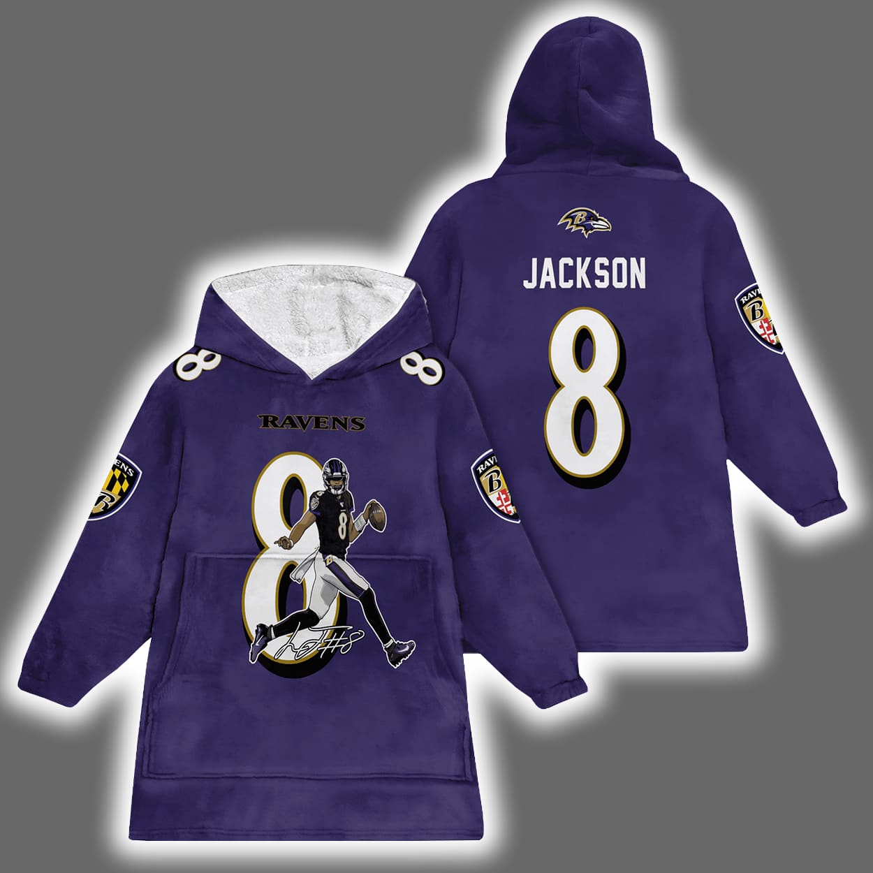 Unleash Your Inner MVP with the Lamar Jackson 8 Baltimore Football Unisex Blanket Hoodie