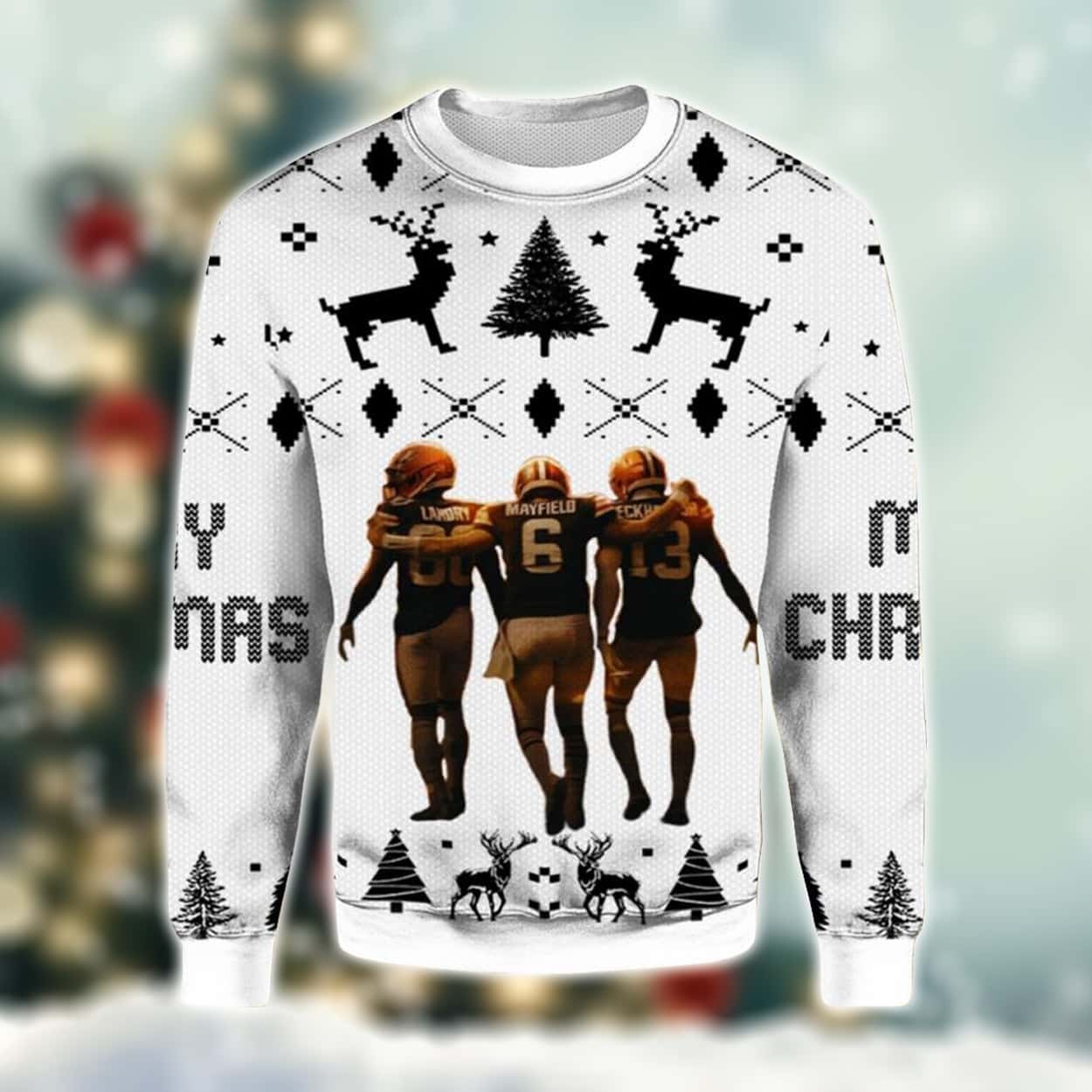 Touchdowns & Tinsel: The Landry Mayfield and Beckham Jr Ugly Christmas Sweater for Football Fans