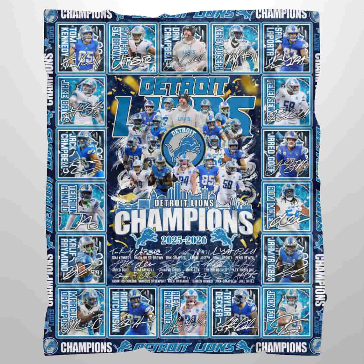 Celebrate the Detroit Lions’ epic championship season with the Lions Champions 2025-2026 Signature Blanket—a bold tribute to victory and team pride.
